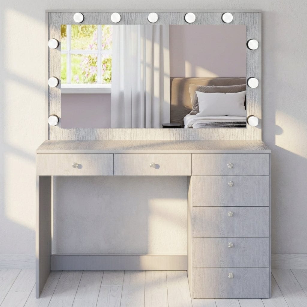 Boahaus Diana 7 Drawer Vanity Desk with Mirror and Lights, Storage and Power