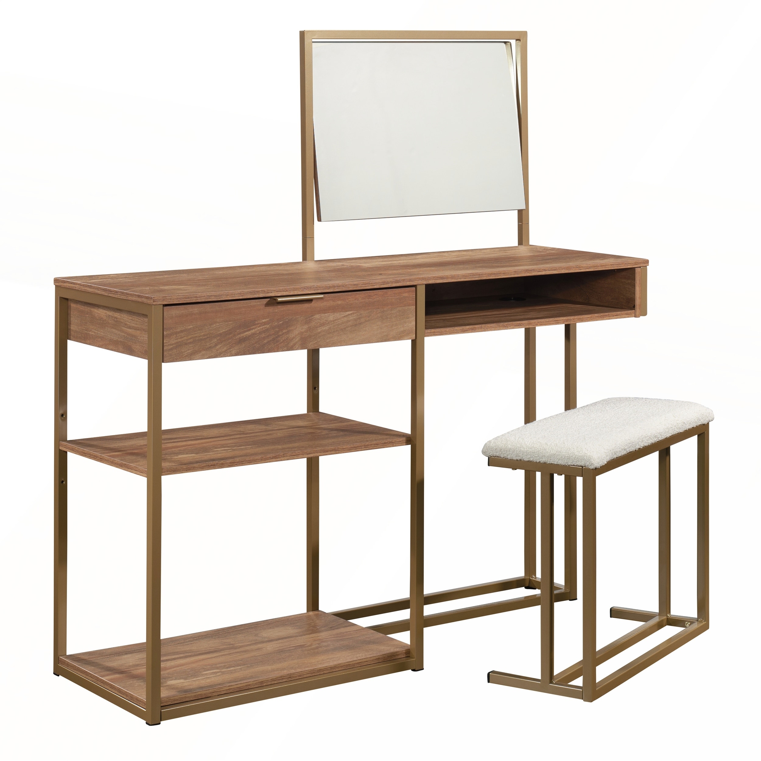 37" Mid-Size Left-Drawer Vanity Table with Cushioned Stool and Sliding Mirror