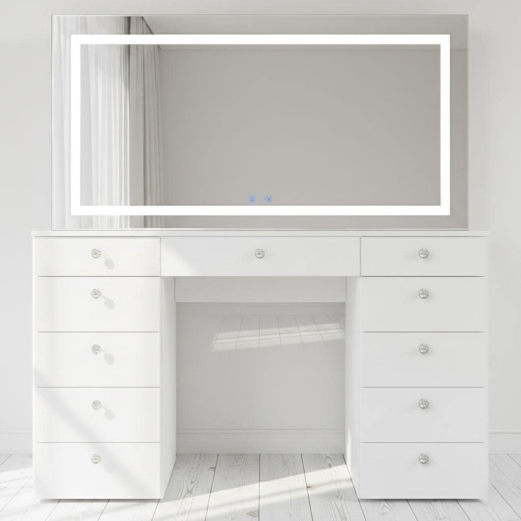 Boahaus Elara 11 Drawer Vanity Desk with Mirror and Lights, Storage and Power Outlet