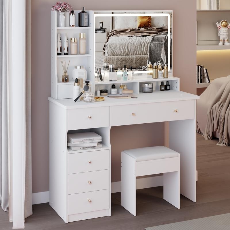 Makeup Vanity Desk w/Lighted Mirror & Charging Station for Bedroom
