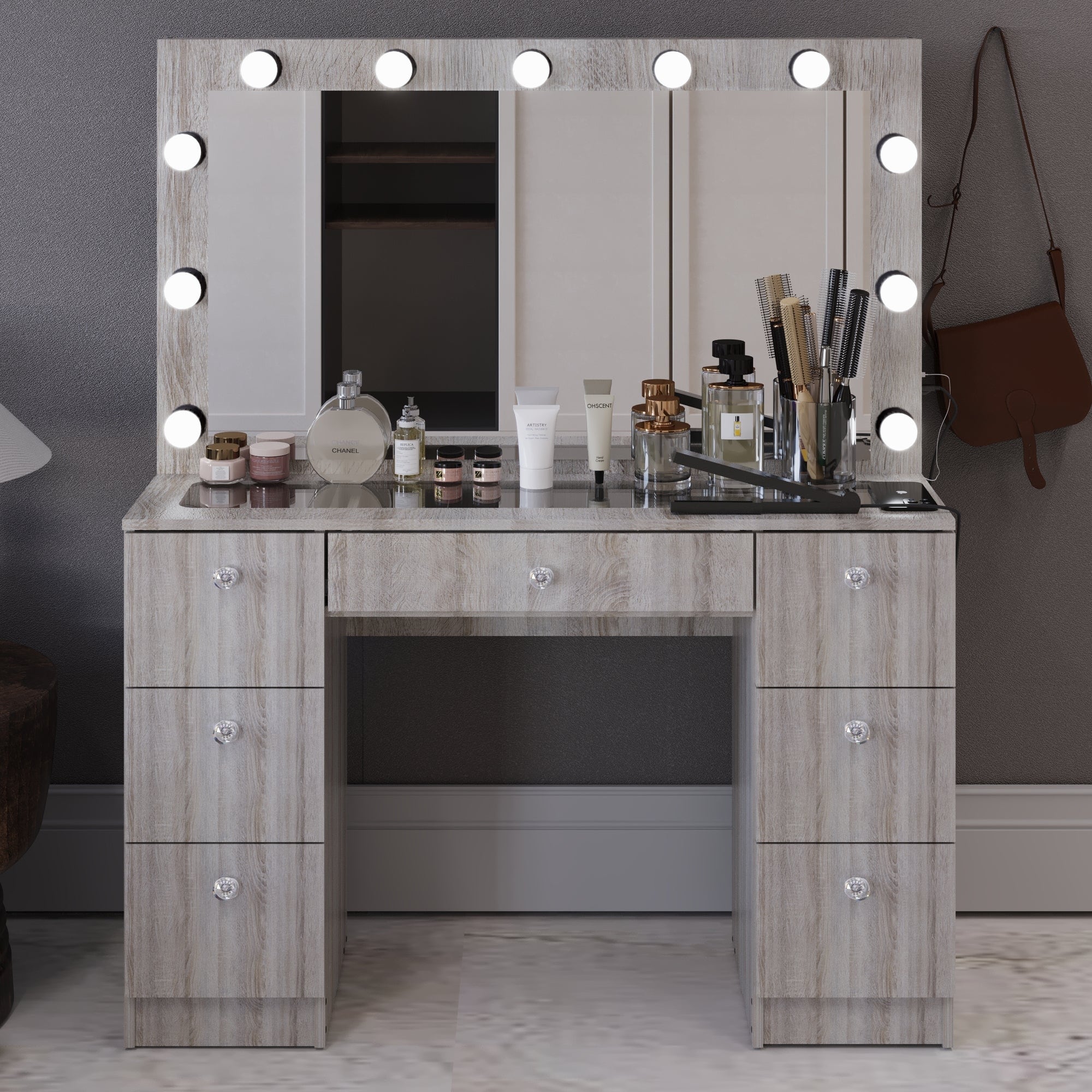 Industrial Makeup Dressing Table with 3 Lighting Modes - 31.5" x 16" x 53.5" (W x D x H)