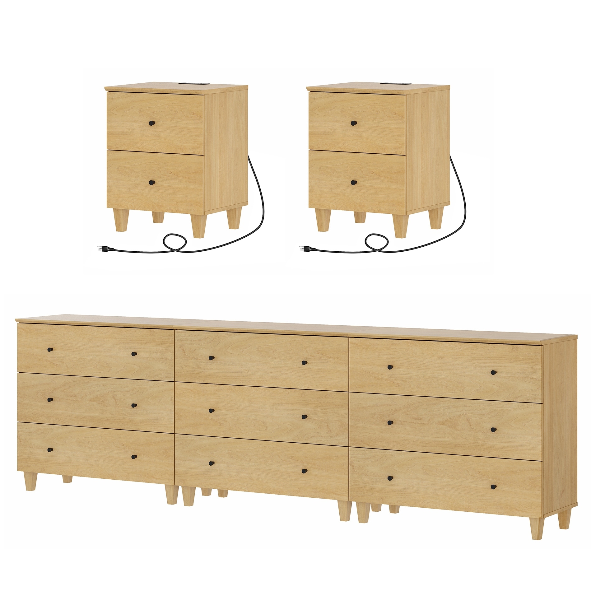 WAMPAT 9-Drawer Wide Dresser and Nightstands Set of 3 for Bedroom