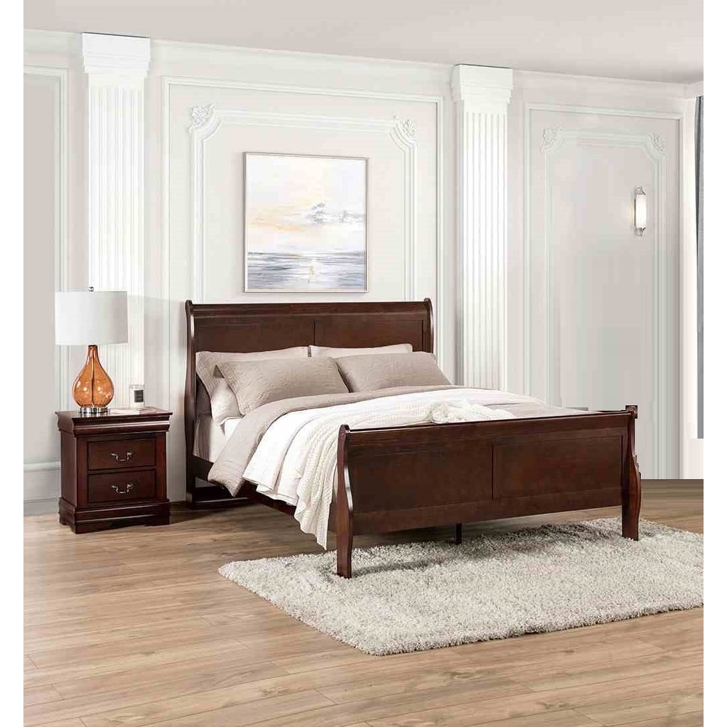 Classic 3pc Bed Two Nightstands Dark Cherry Finish Bedroom Set