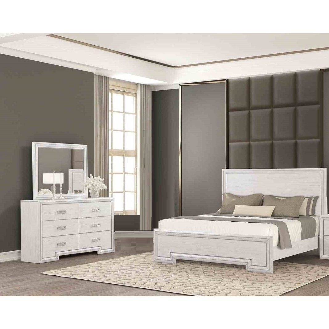 White Finish Transitional Bedroom Set Bed Nightstand Dresser Mirror Chest