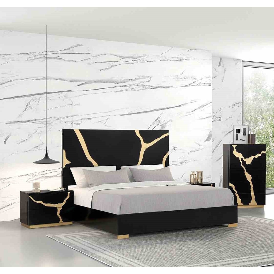 Modern 3pc Bed Nightstand Chest Wooden Bedroom Set Black