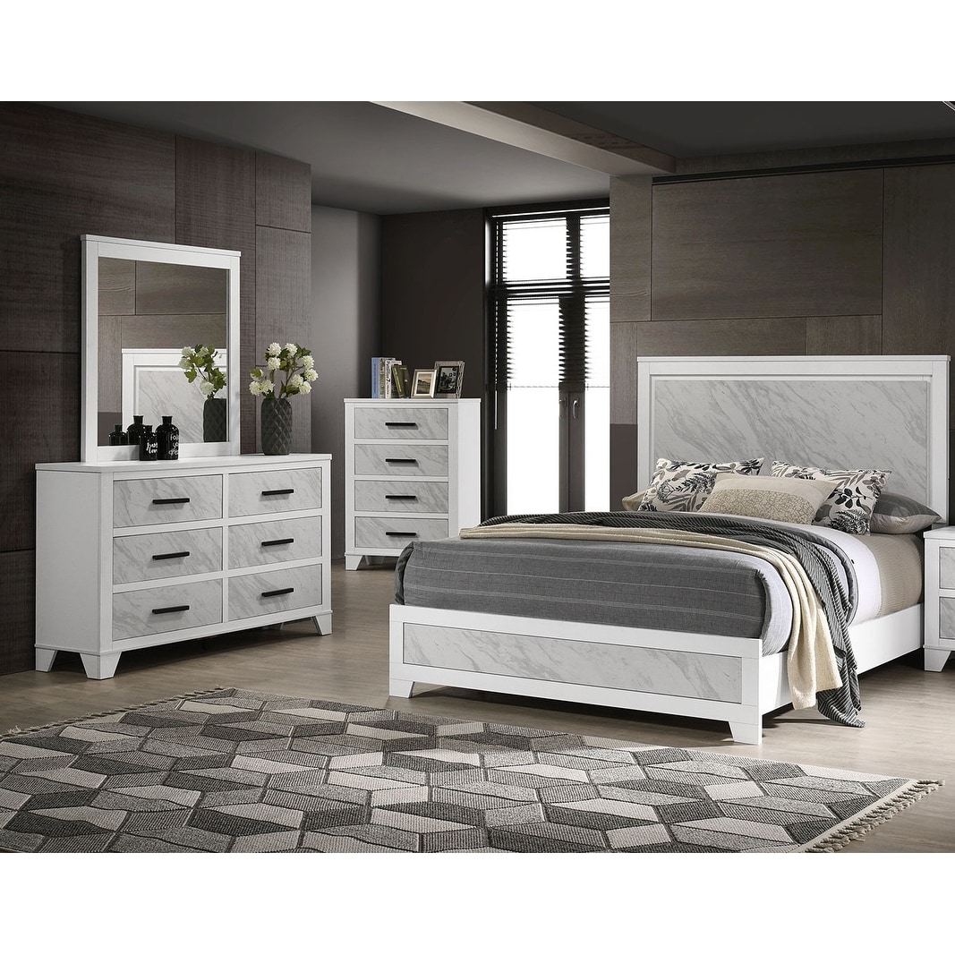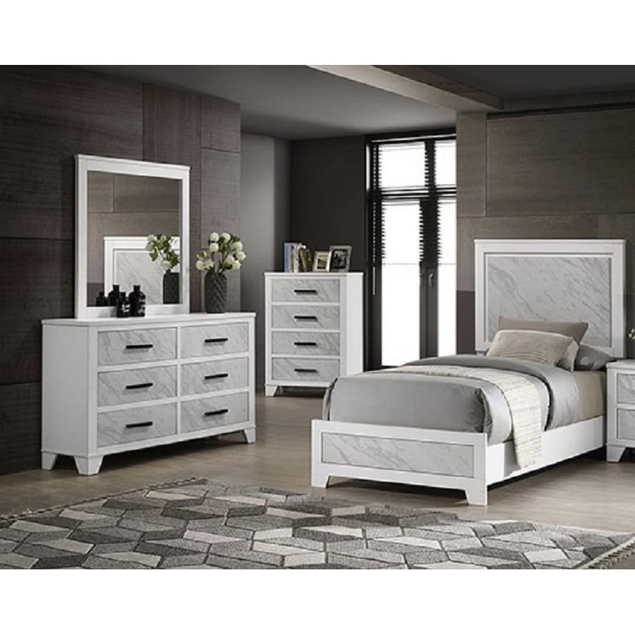 Classic White 4PC Bedroom Set Bed Dresser Mirror Chest