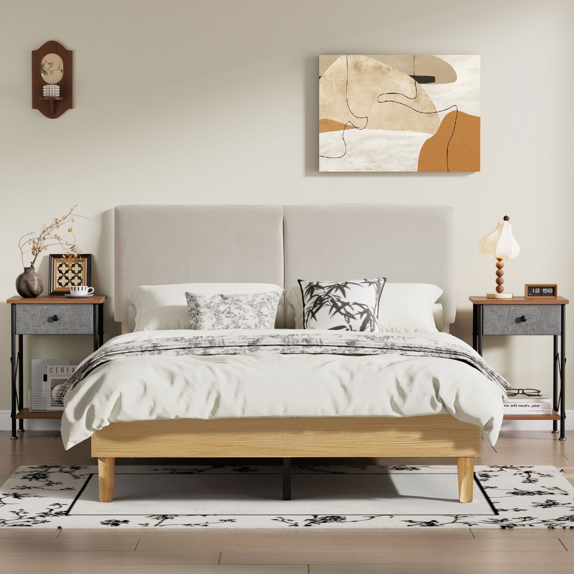 VECELO Upholstered Bedroom Set Upholstered Bed Frame with Nightstand Set of 2