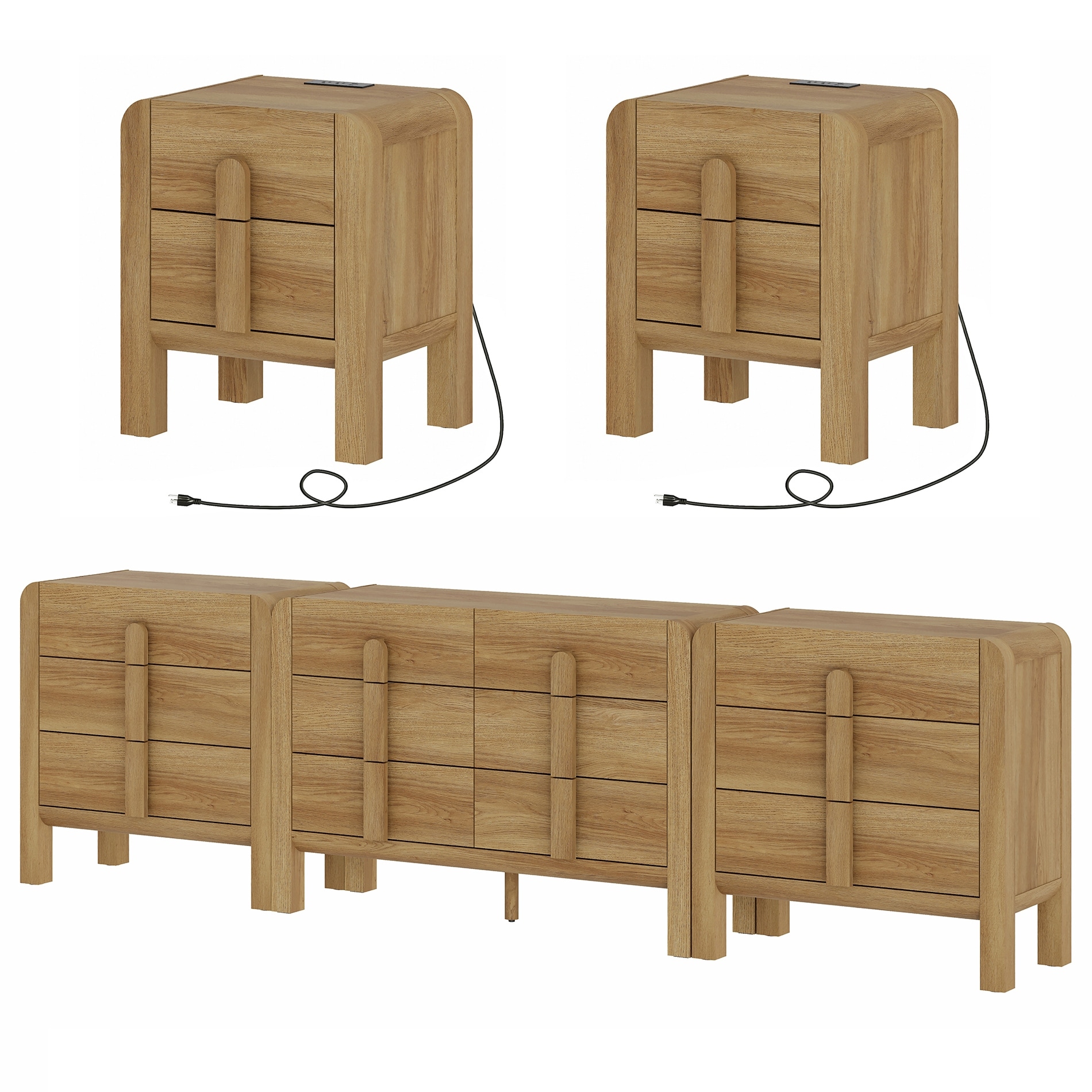 WAMPAT Wooden Dresser And Nightstand Sets, 5 Pcs Bedroom Set without Bed, NightStand Set Of 2,Drawer Dresser With Curved Profile