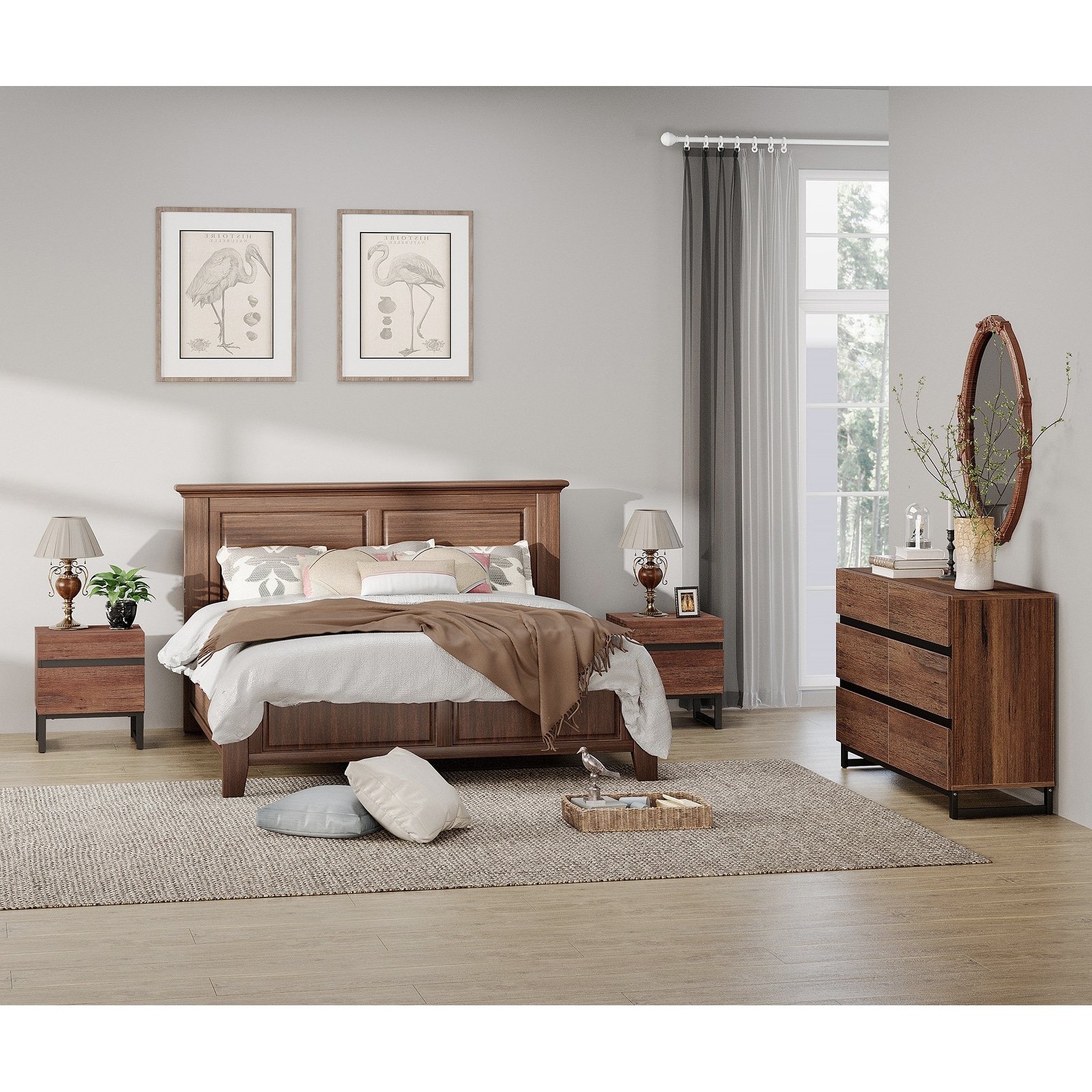 Furniture of America Rensite Modern 5-Piece Oak Solid Wood Panel Bedroom Set