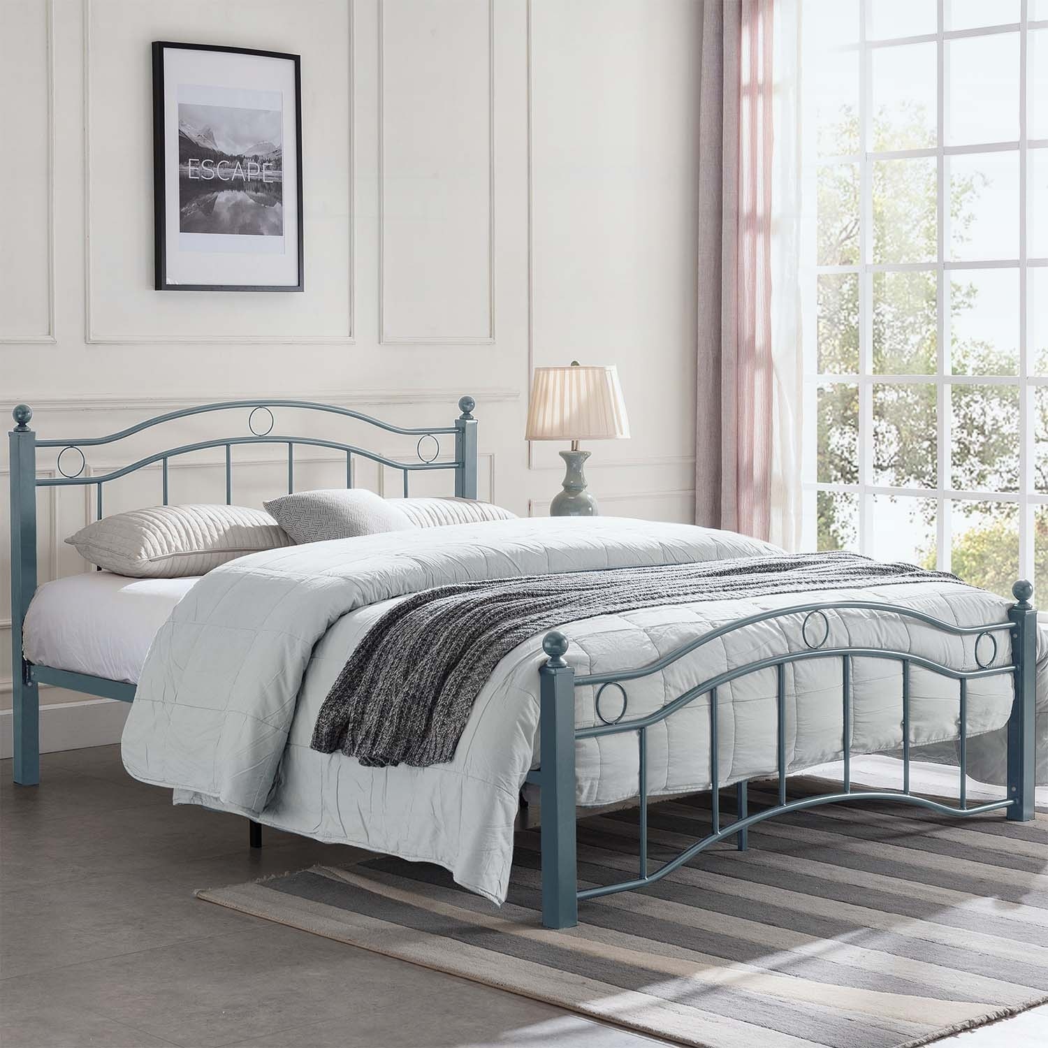 Classic Metal Bed with Wavy Headboard and Footboard,Sturdy Iron Frame