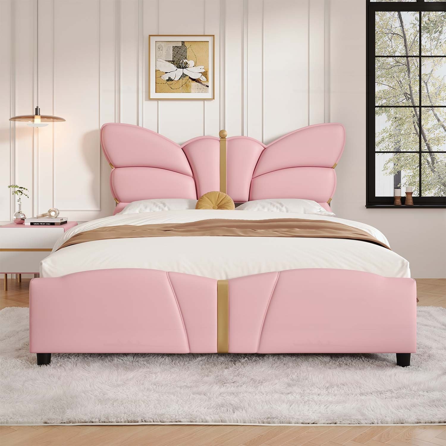 Upholstered Bed with Butterfly Shaped Headboard