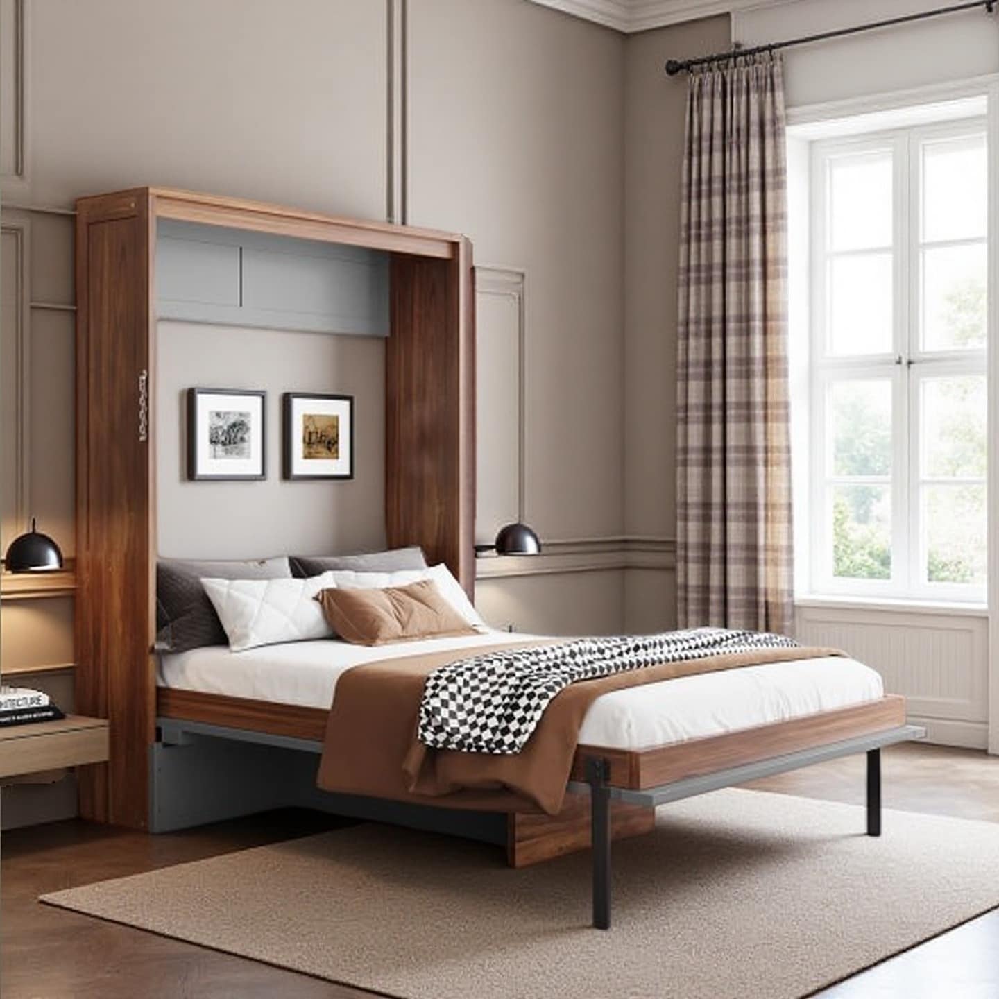 Wooden Wall Murphy Bed, Space-Saving