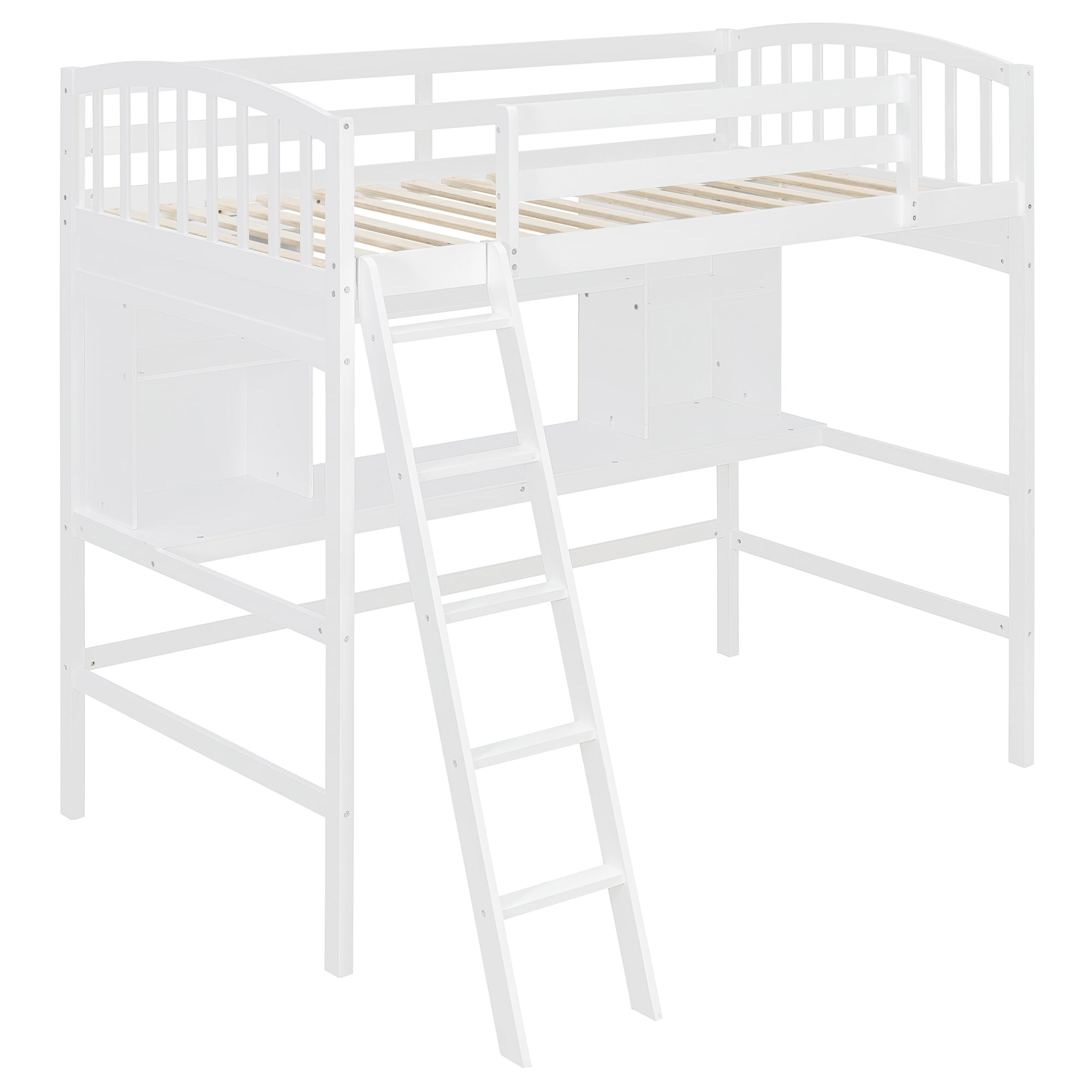 MimiHaven Twin Size Loft Bed with Storage Shelves, Desk, and Ladder