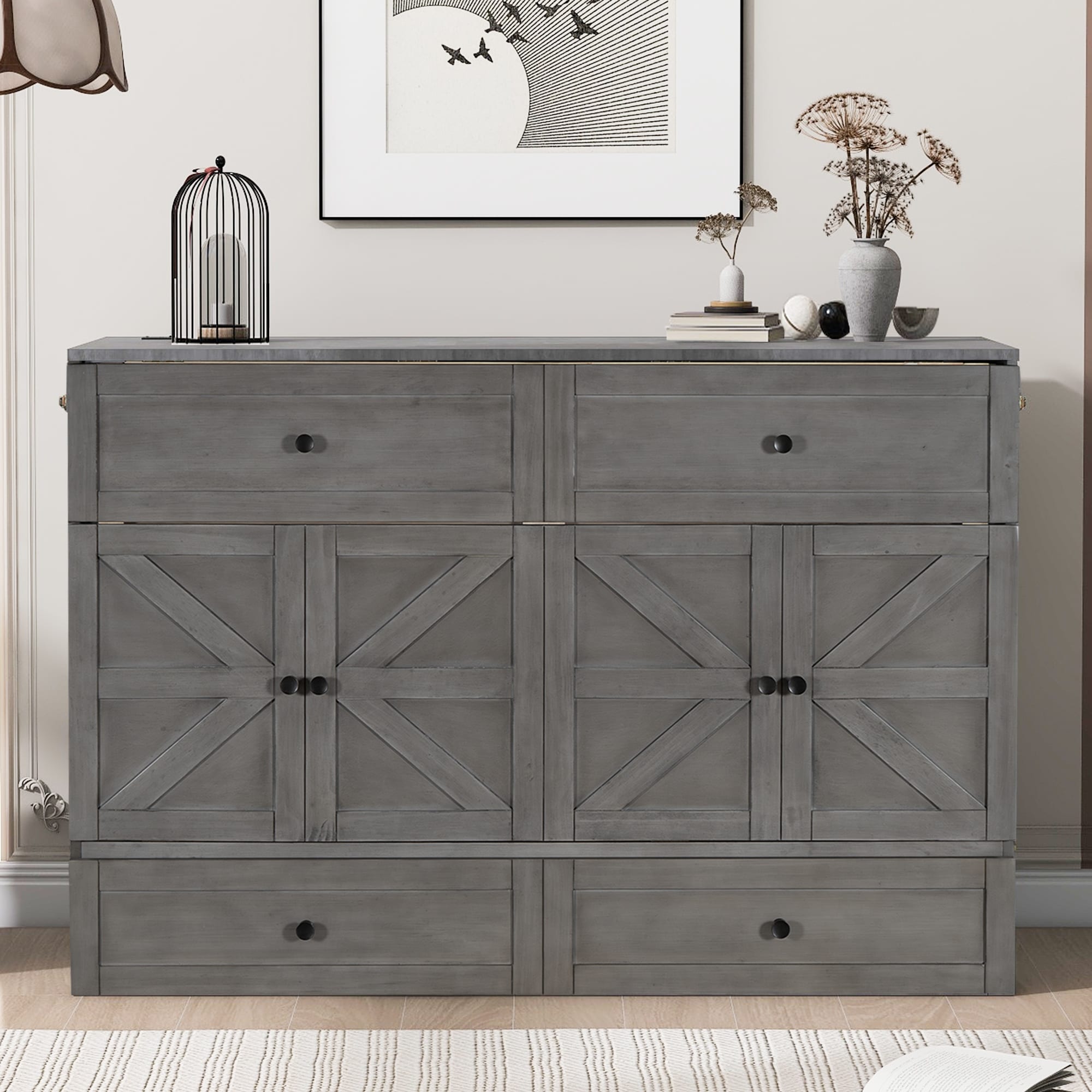 Roomfitters Full Size Murphy Bed with Large Drawers, USB Ports, and Sleek Brushed Finish for Modern Storage