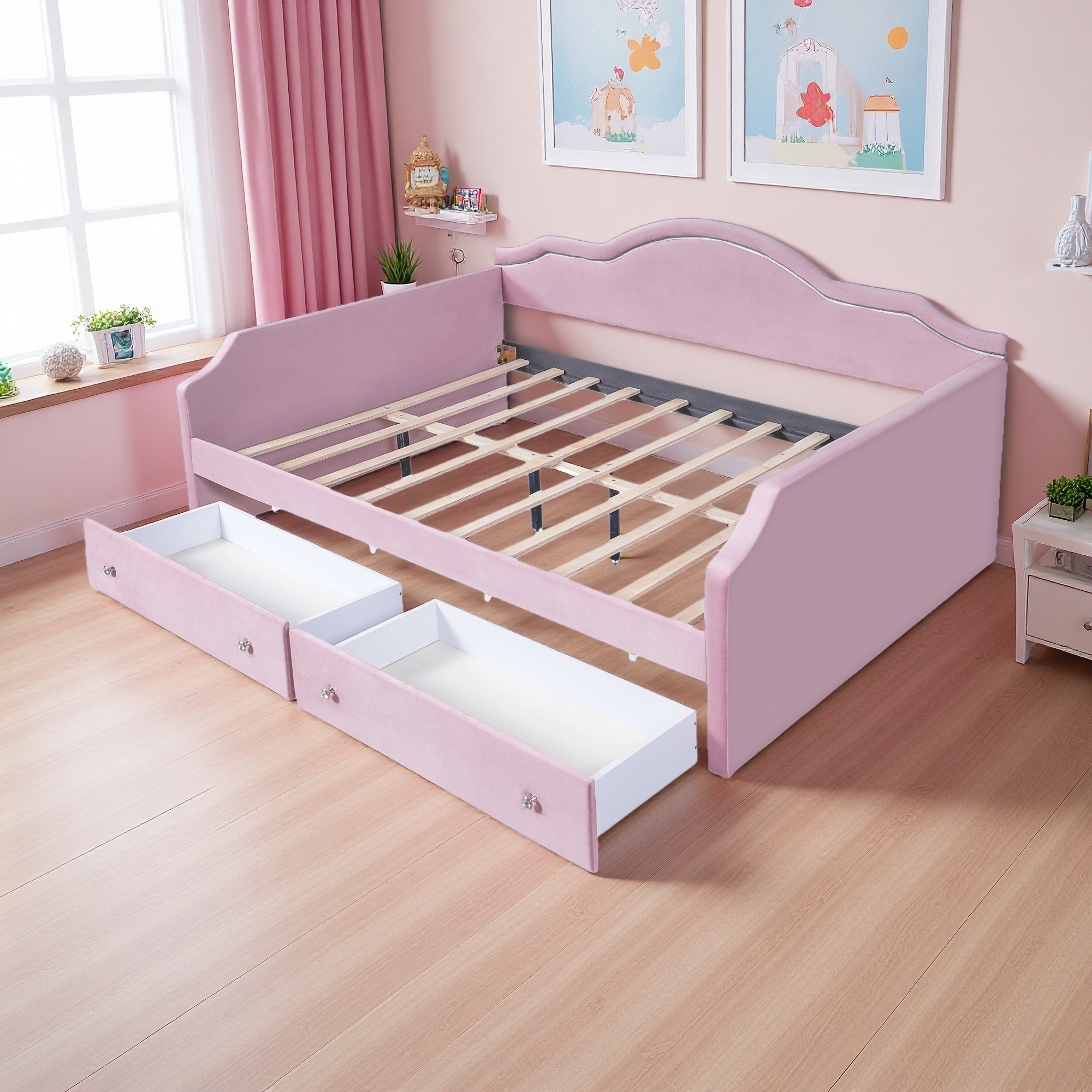 Full Pinewood Upholstered Daybed with LED Backrest & Drawers