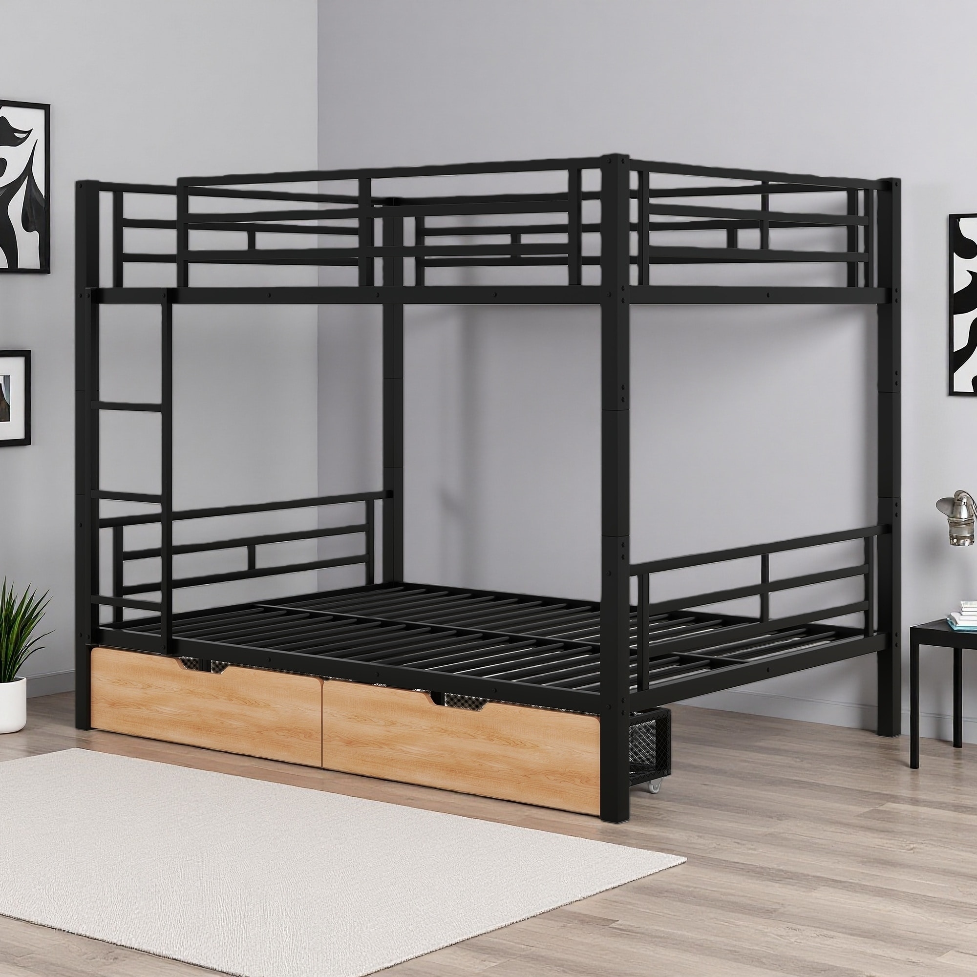 Full Size Metal Convertible Bunk Bed with 2 Drawers
