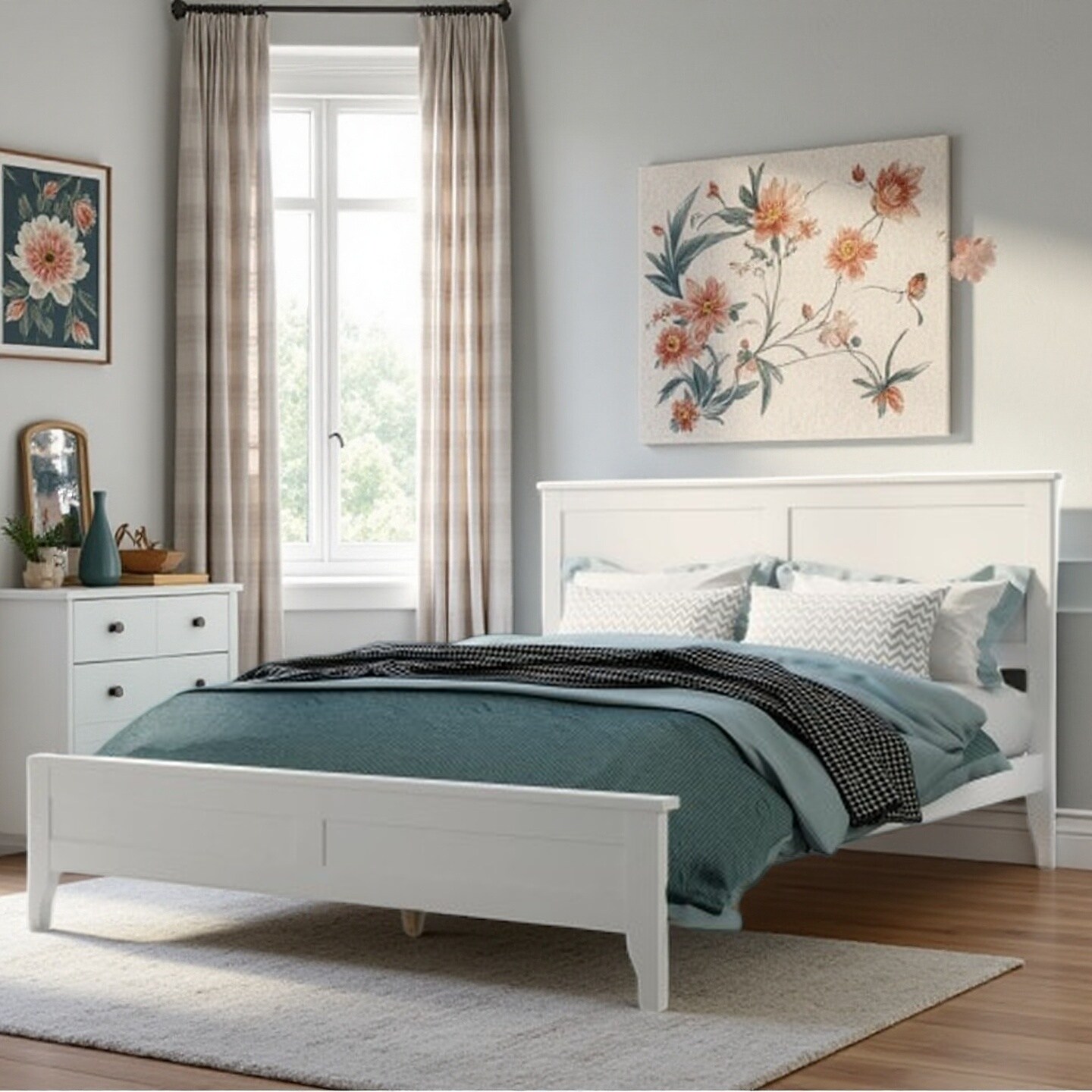 Solid Wood Platform Bed with Slatted Headboard, Sturdy Pine Frame, No Box Spring Needed, Modern Minimalist Design