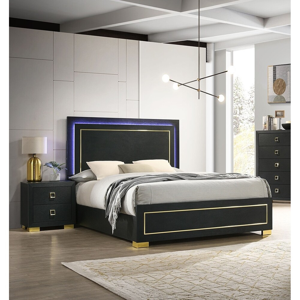 Queen Size Engineered Wood Platform Bed Set with LED Headboard and Gold Accent Legs - 3pc Contemporary Furniture