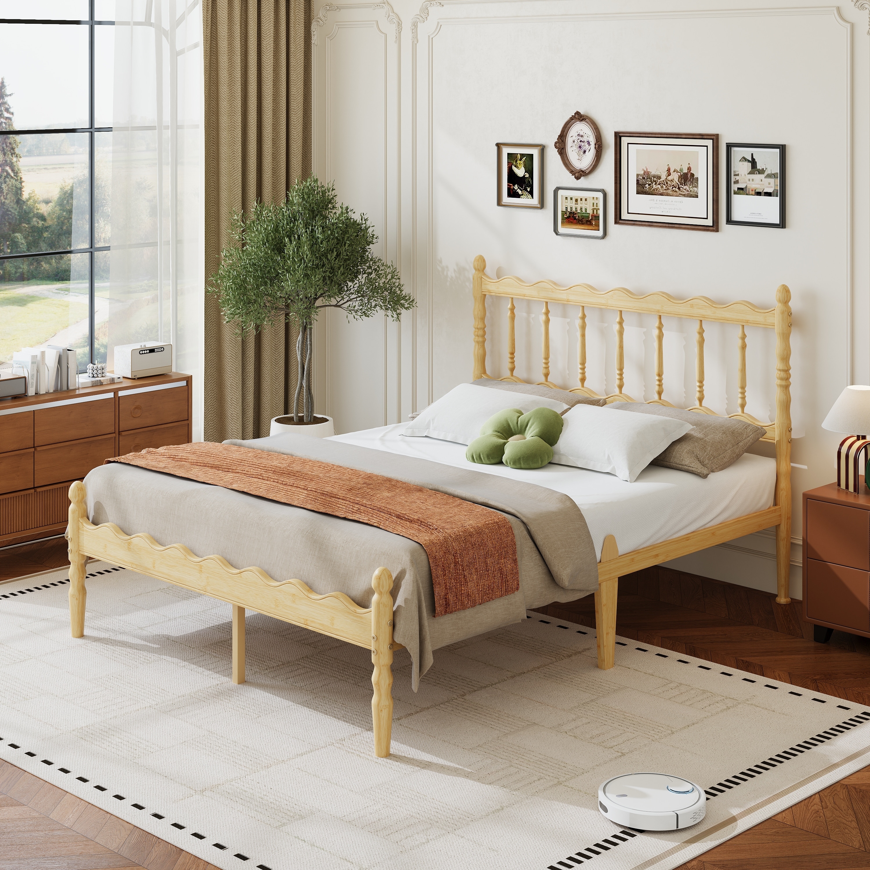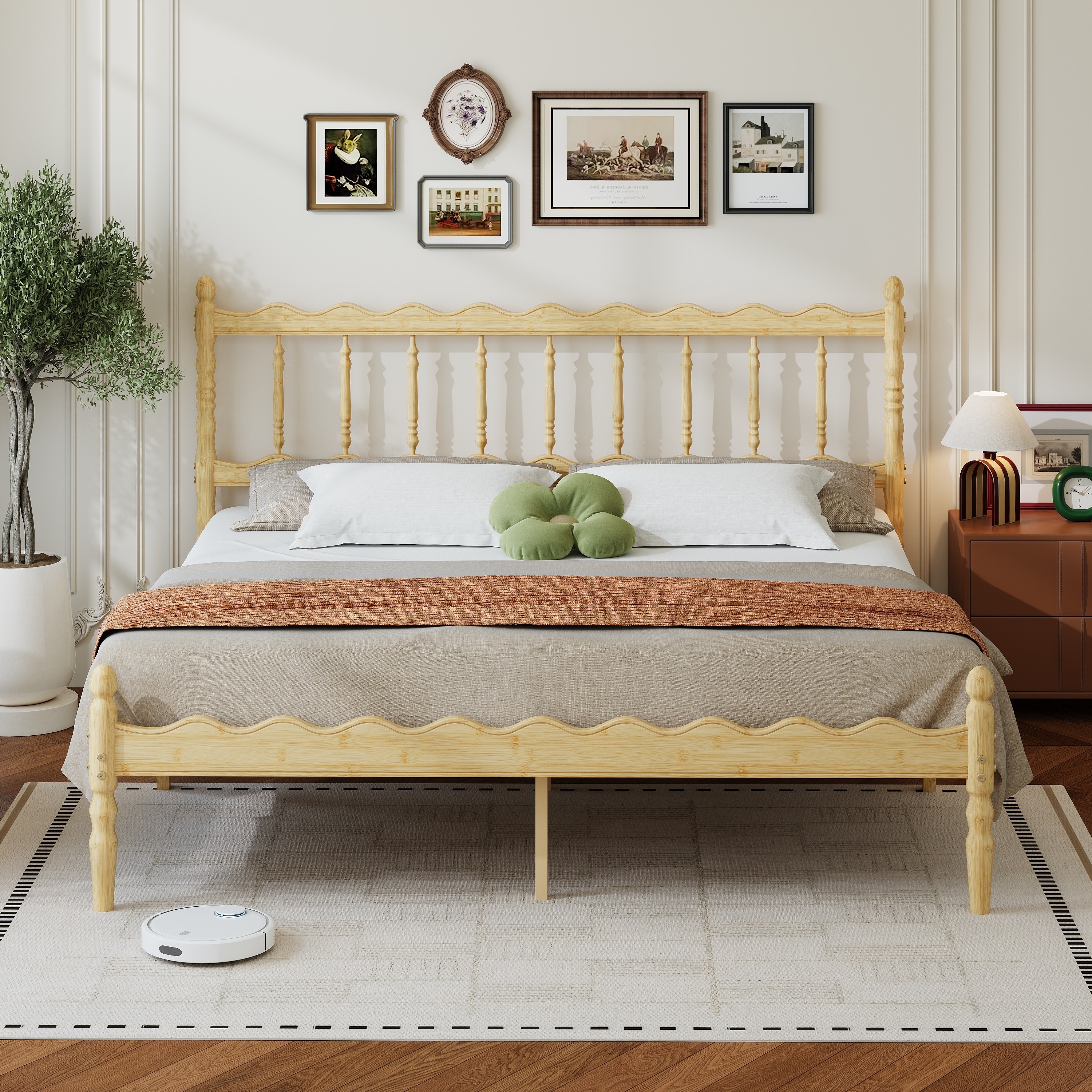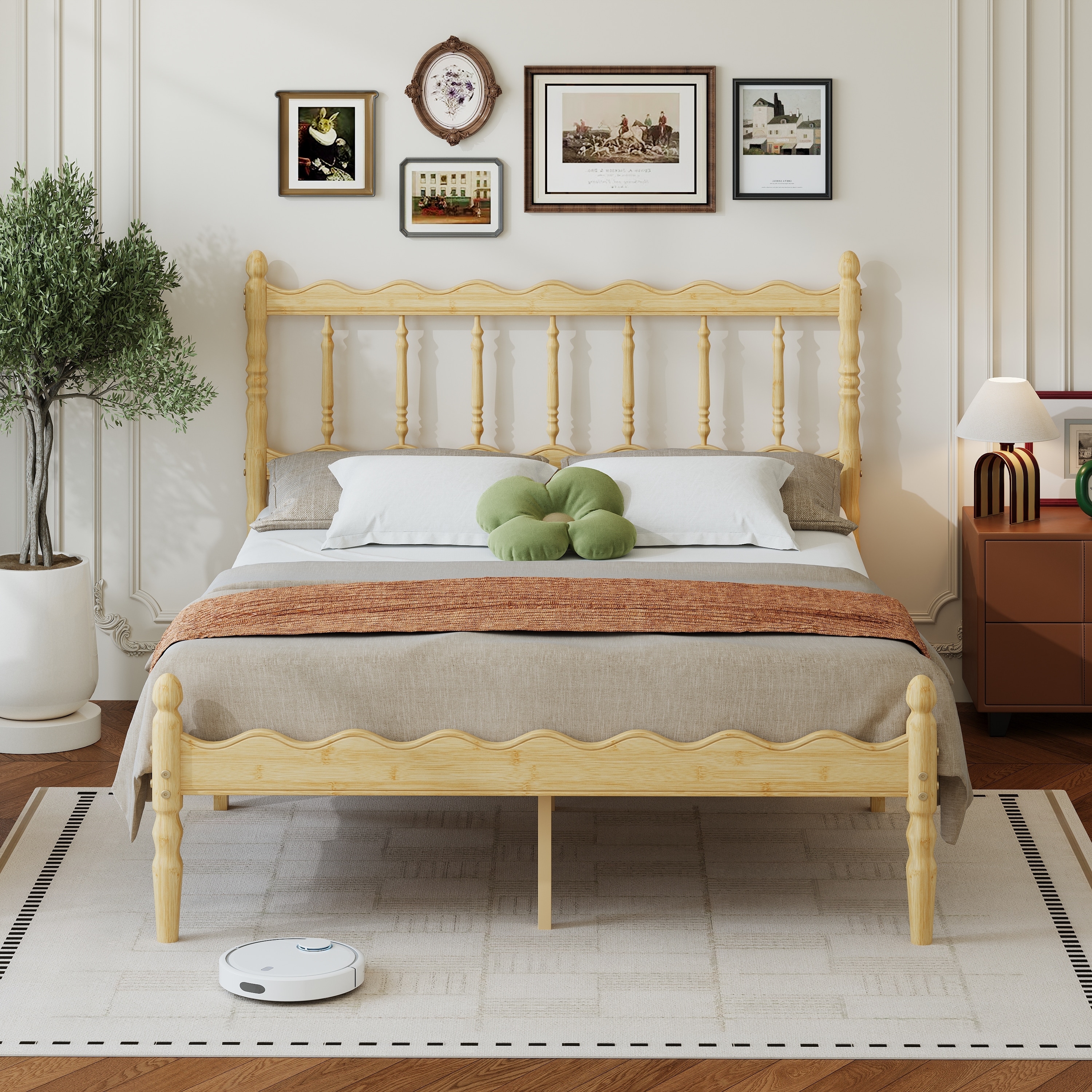 Bamboo Wood Platform Bed Frame with 43" Wavy Headboard,No Box Spring Required, Easy to Assemble