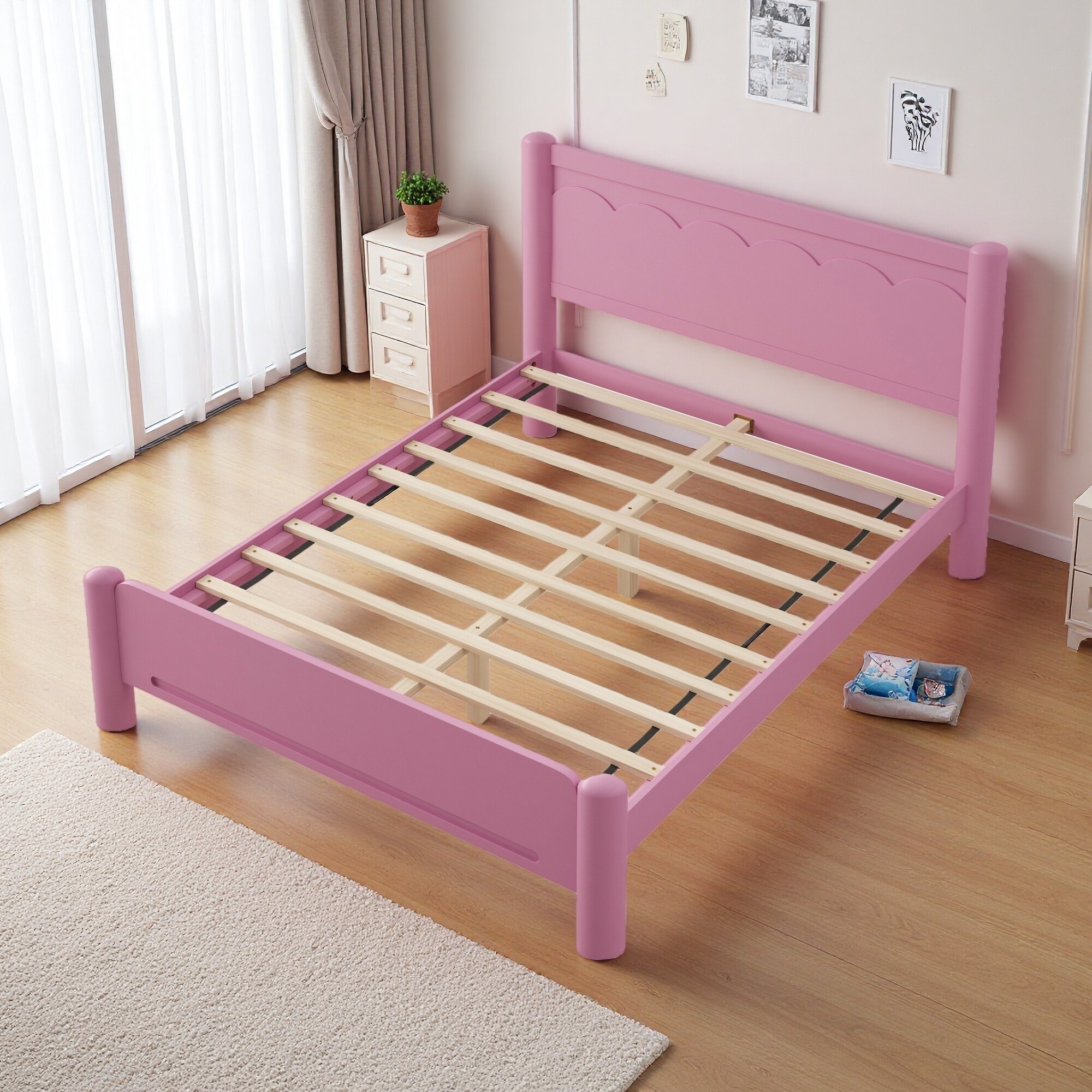 Queen Solid Wood Platform Bed with Headboard & Noiseless Slat Support