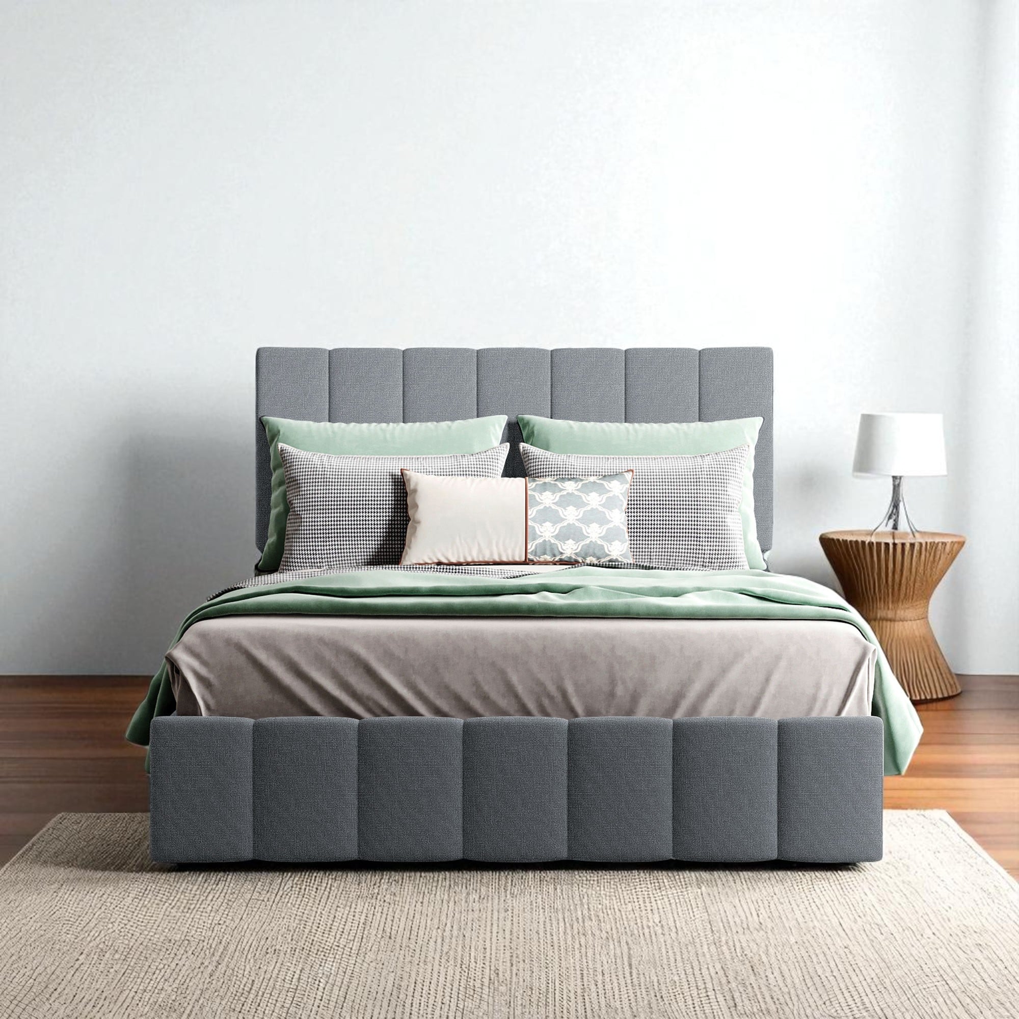 Full/Queen Upholstered Platform Bed with Hydraulic Lift Storage, Linen Headboard and Slats
