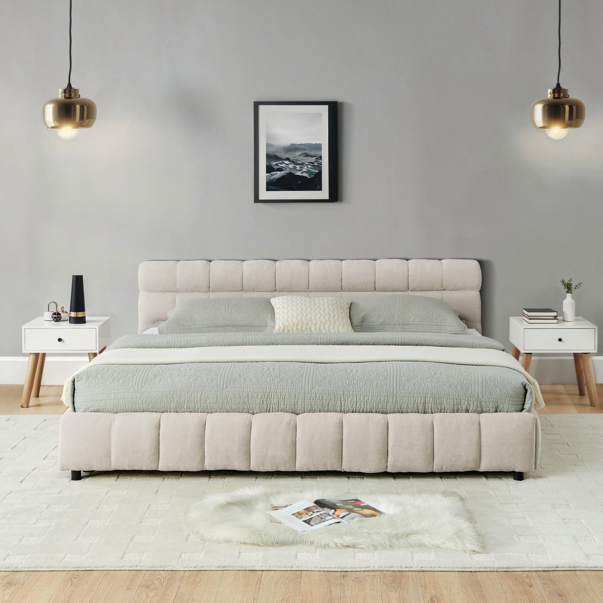 California King Size Chenille Upholstered Bed with Storage Drawers, Comfortable Headboard and Solid Frame