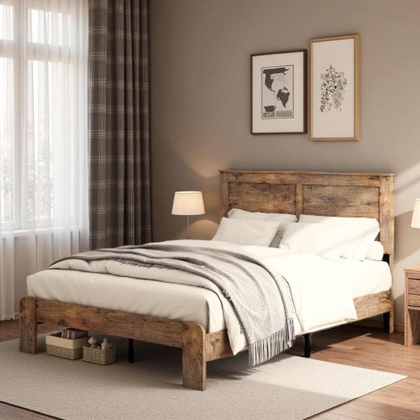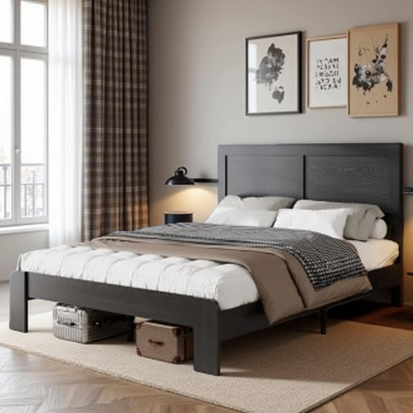 Queen Size Wood and Metal Platform Bed Frame, Sturdy Noise-Free Design, No Box Spring Needed, Easy Assembly, Under-Bed Storage