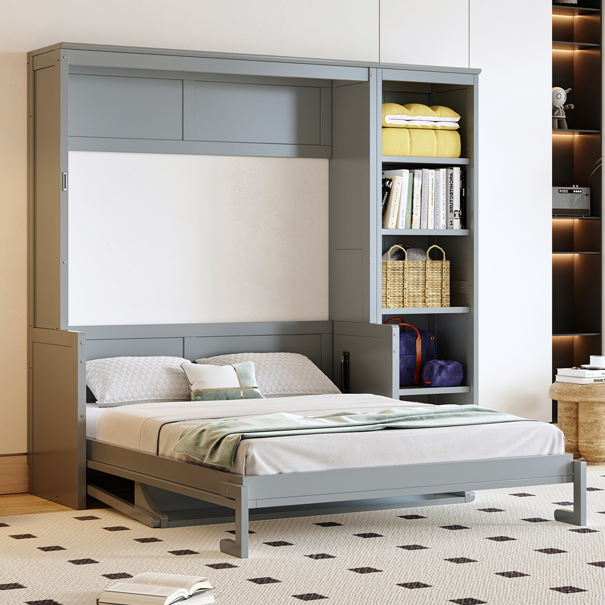 Full Size Murphy Bed with Desk and Bookshelf