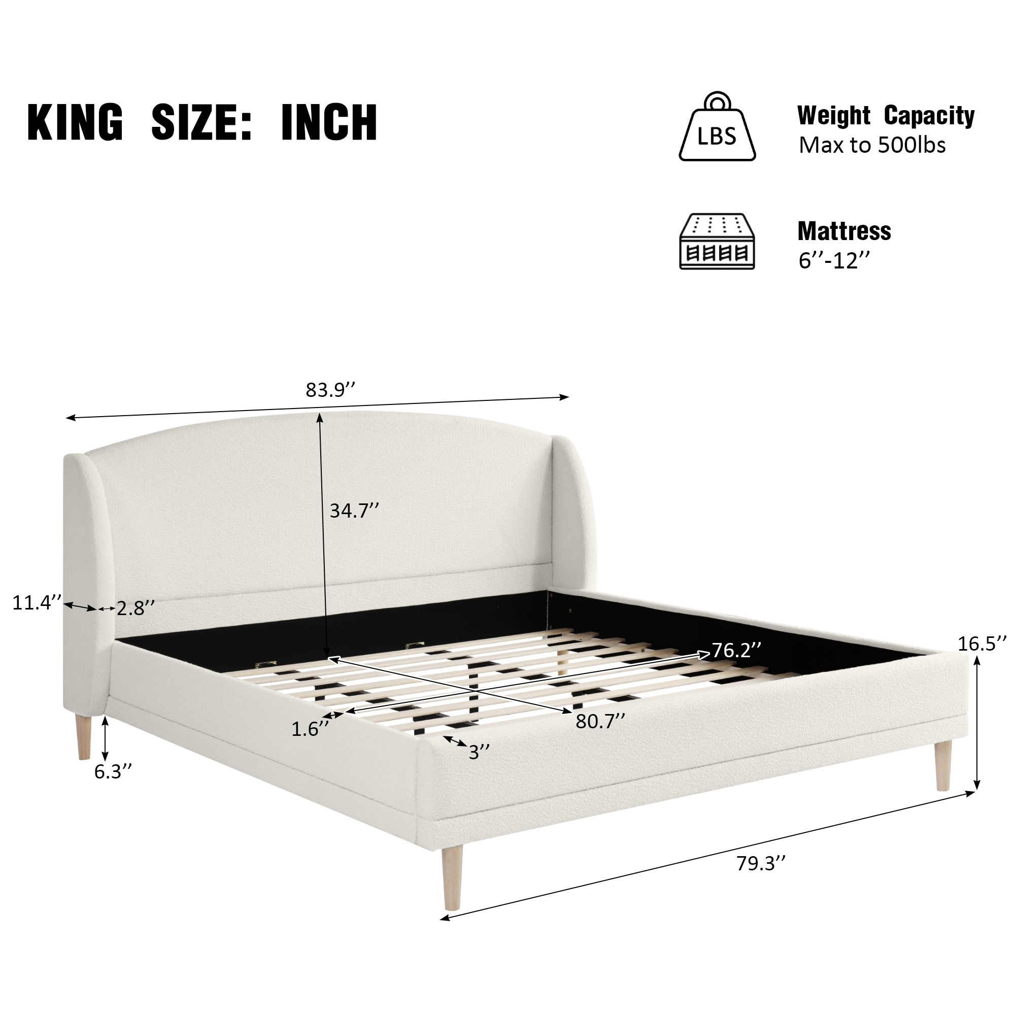 Queen Size Velvet Upholstered Platform Bed with Decorative Curved Headboard