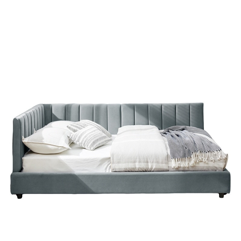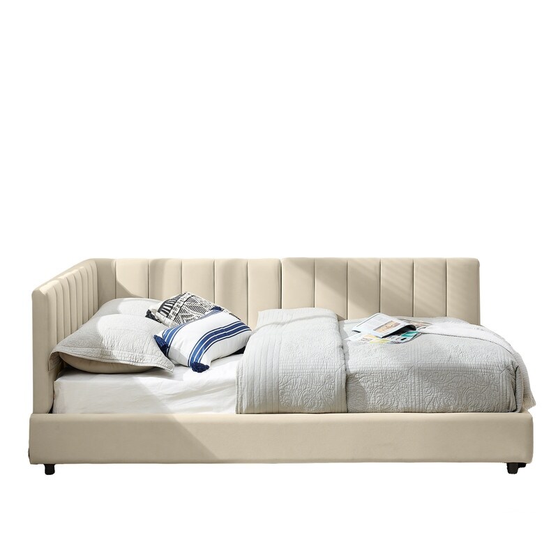 Full Size L-Shaped Upholstered Daybed with Extendable Twin Trundle