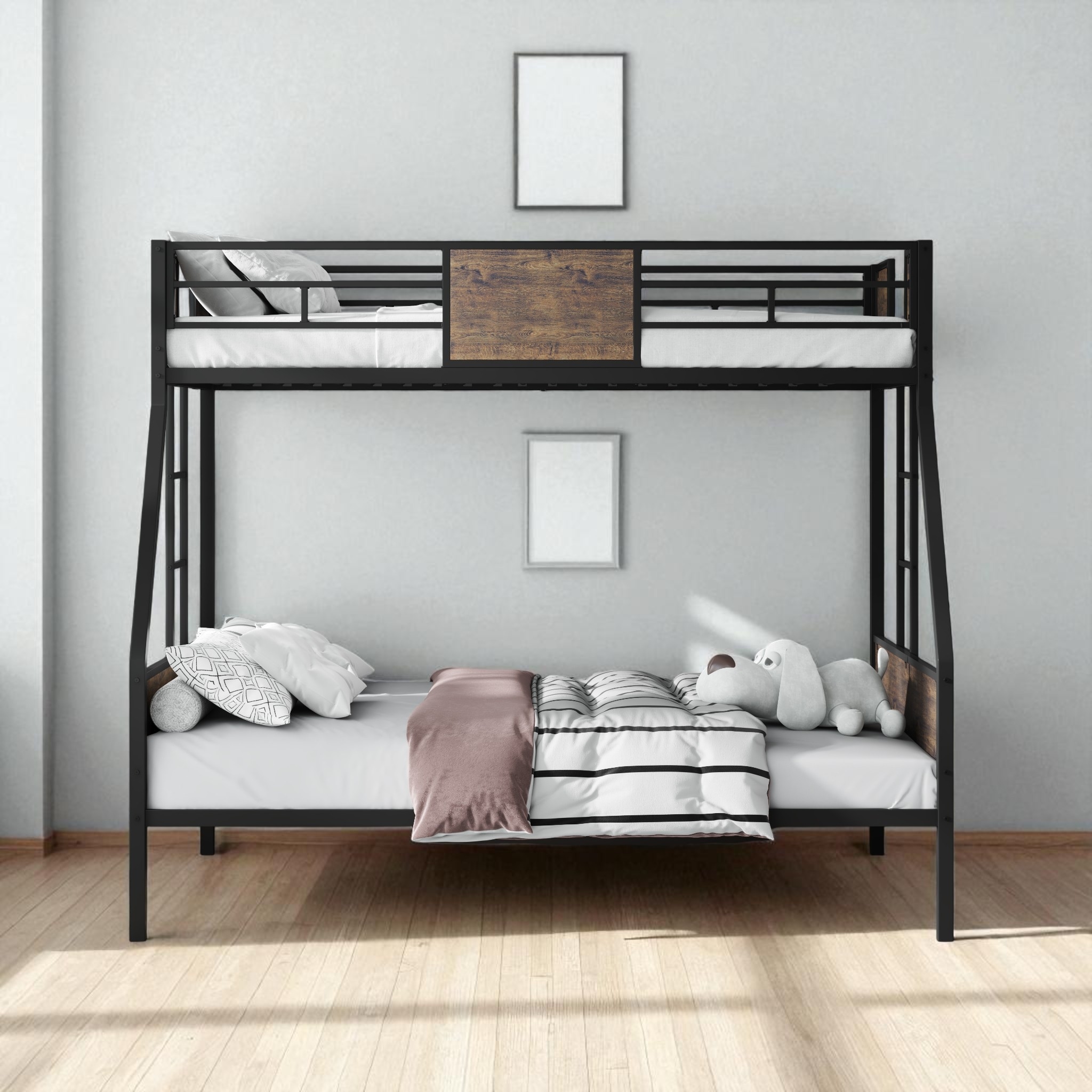 Twin Over Full Metal Bunk Bed with Trundle, Safety Guardrails, Dual Ladders and Slat Support, No Box Spring Required