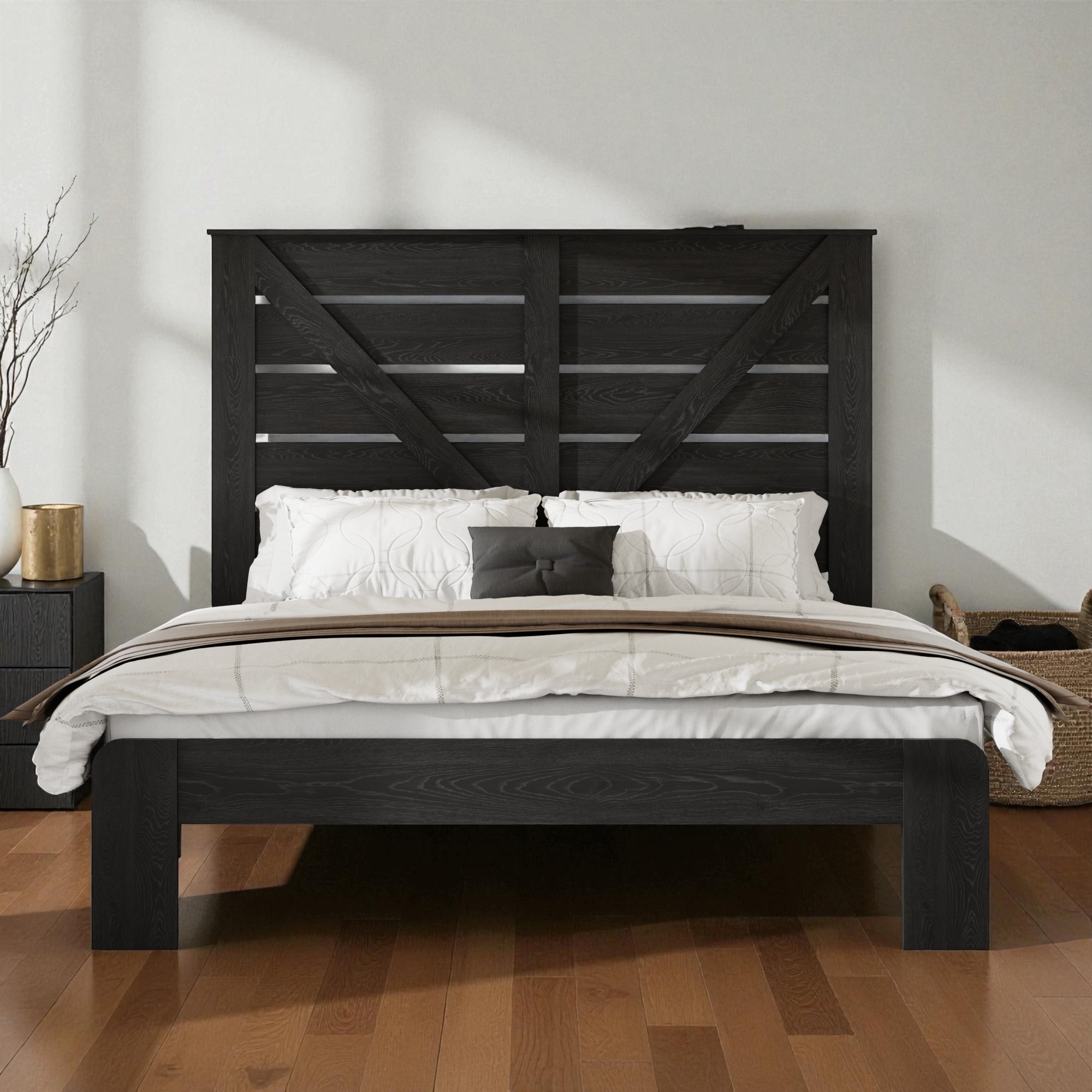Queen Size Metal & Wood Platform Bed with 2 USBs, no noise