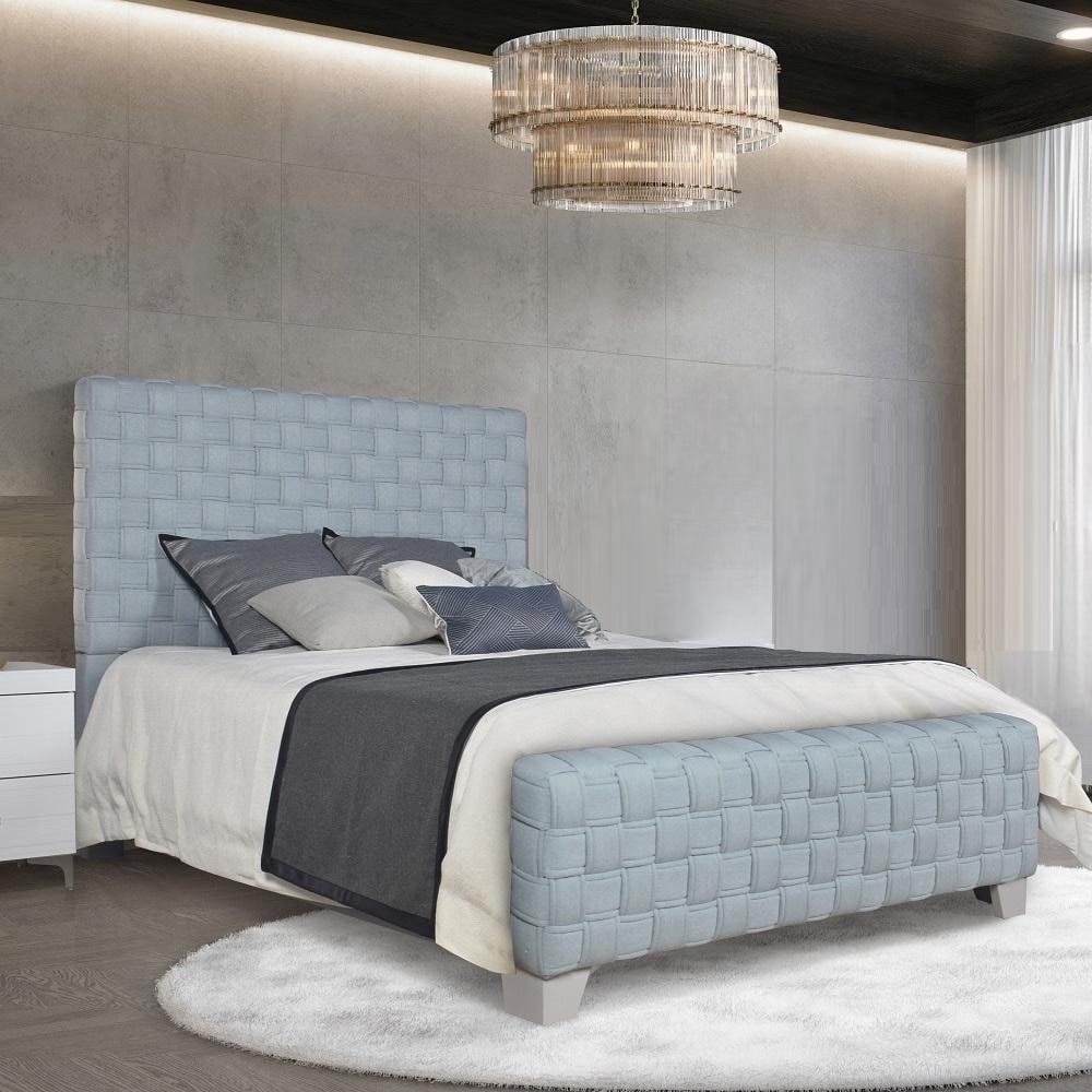 Contemporary Upholstered Bed Light Teal Chenille Bold Design Bedroom Furniture 1pc