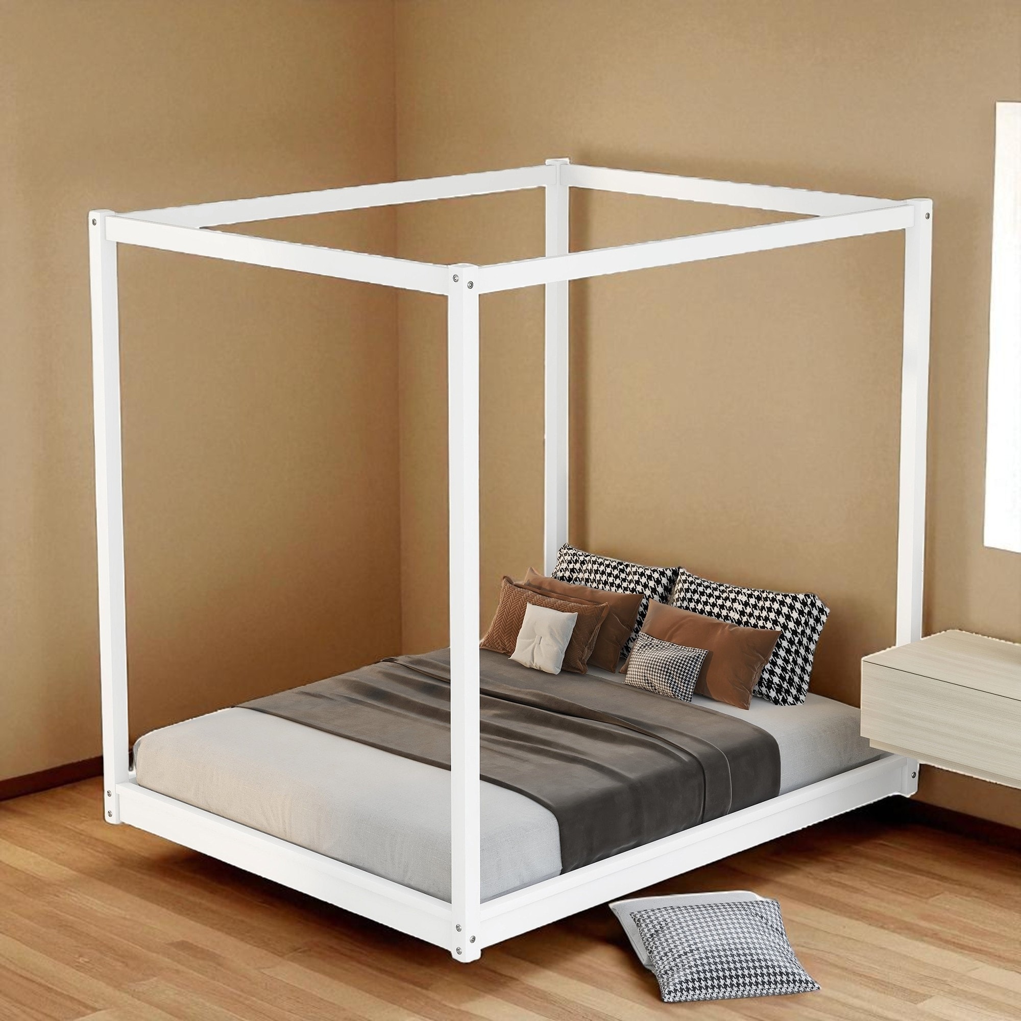 Queen Size Canopy Platform Bed Frame with Slats and Support Legs, No Box Spring Needed