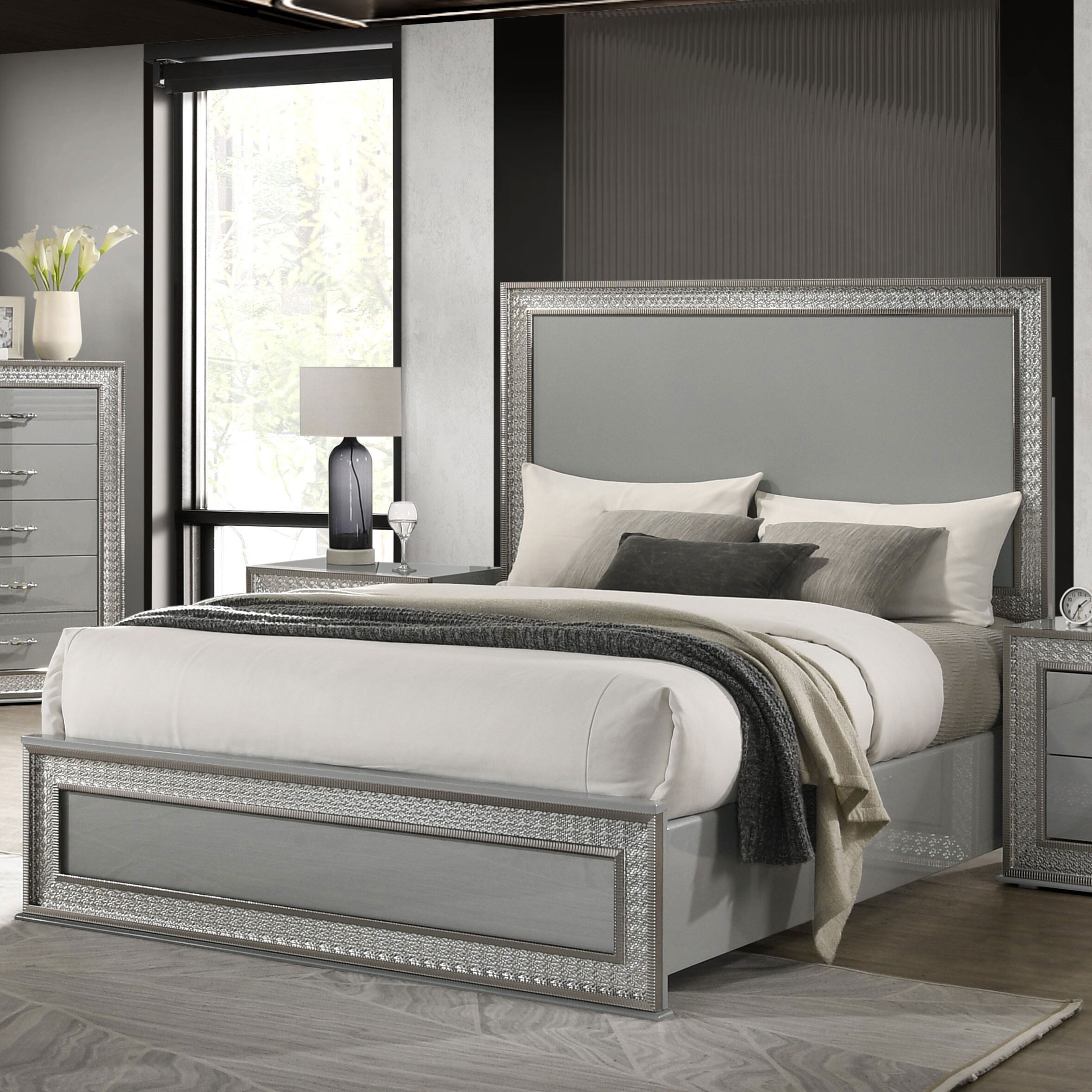 Furniture of America Isabella Glam Metallic Grey Glossy Platform Bed