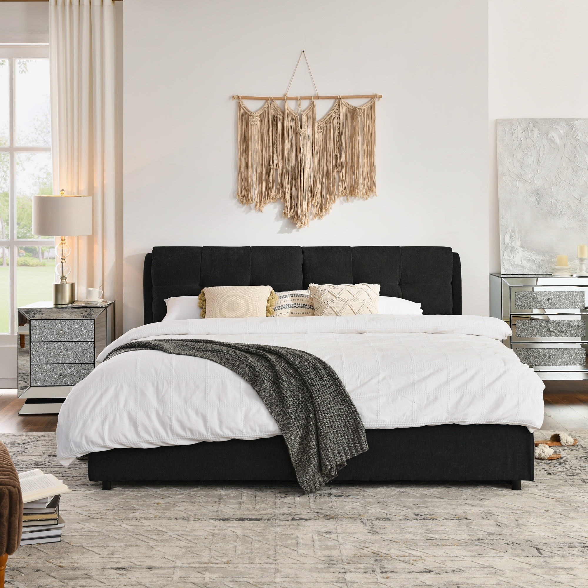 Storage Upholstered Hydraulic Platform Bed with Integrated Headboard and Chenille Fabric