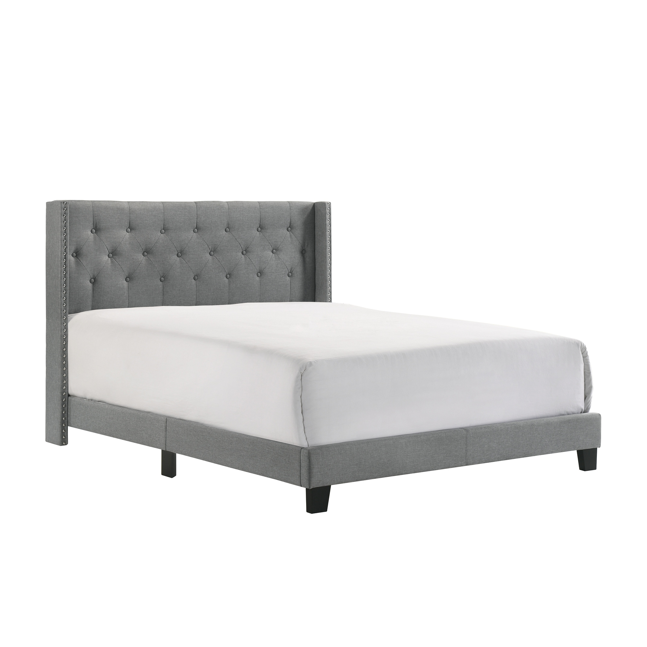 Queen Size Bed with Wingback Design Polyester Fabric Button-Tufted Details & Nailhead Trim French Country Style