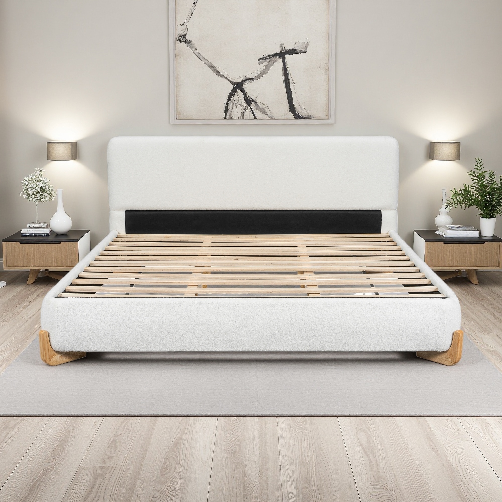 Twin Size Upholstered Bed Frame with Button-Tufted Headboard Boucle Fabric, Transitional Style