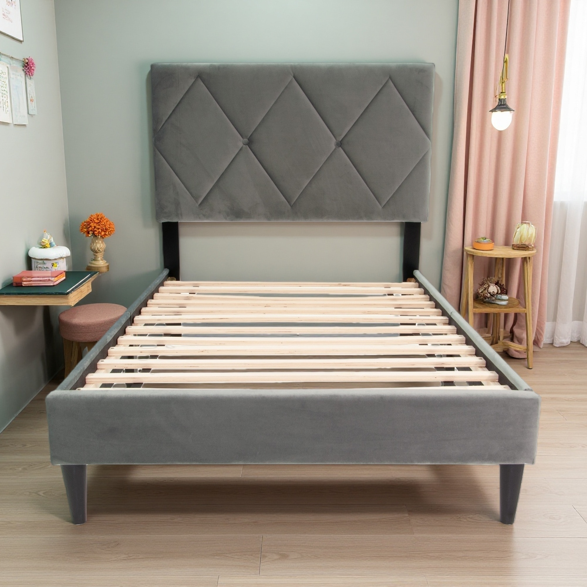 Twin Size Velvet Bed with Adjustable Tufted Headboard