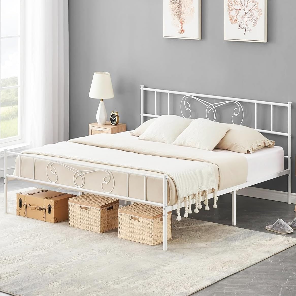 King Size Metal Platform Bed Frame with Headboard and Footboard, Mattress Foundation with Premium Steel Slats Support