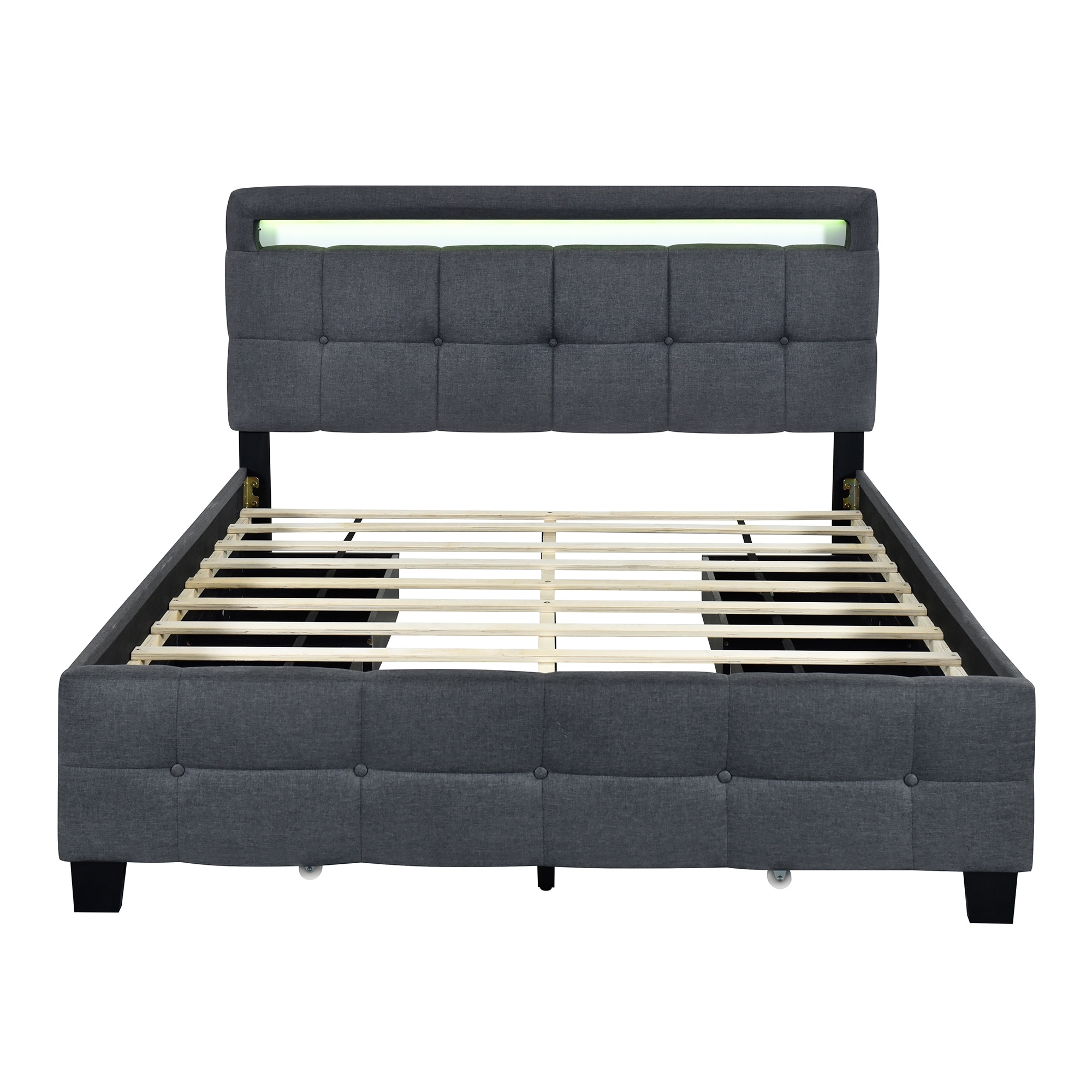Queen Size Upholstered Platform Bed with LED Frame and 4 Drawers