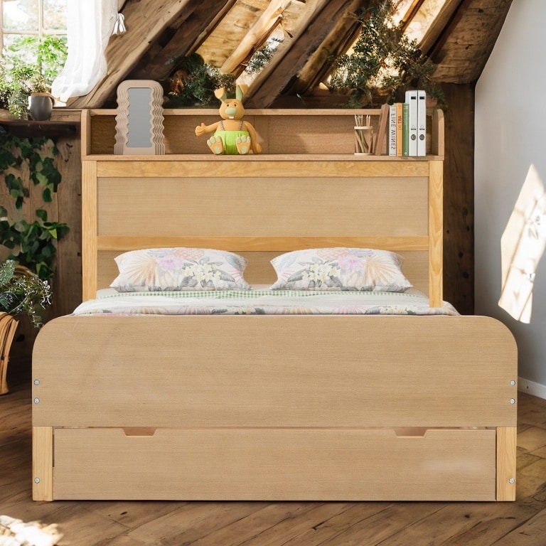 Solid Wood Bunk Bed with Drawers, Convertible 2 Beds