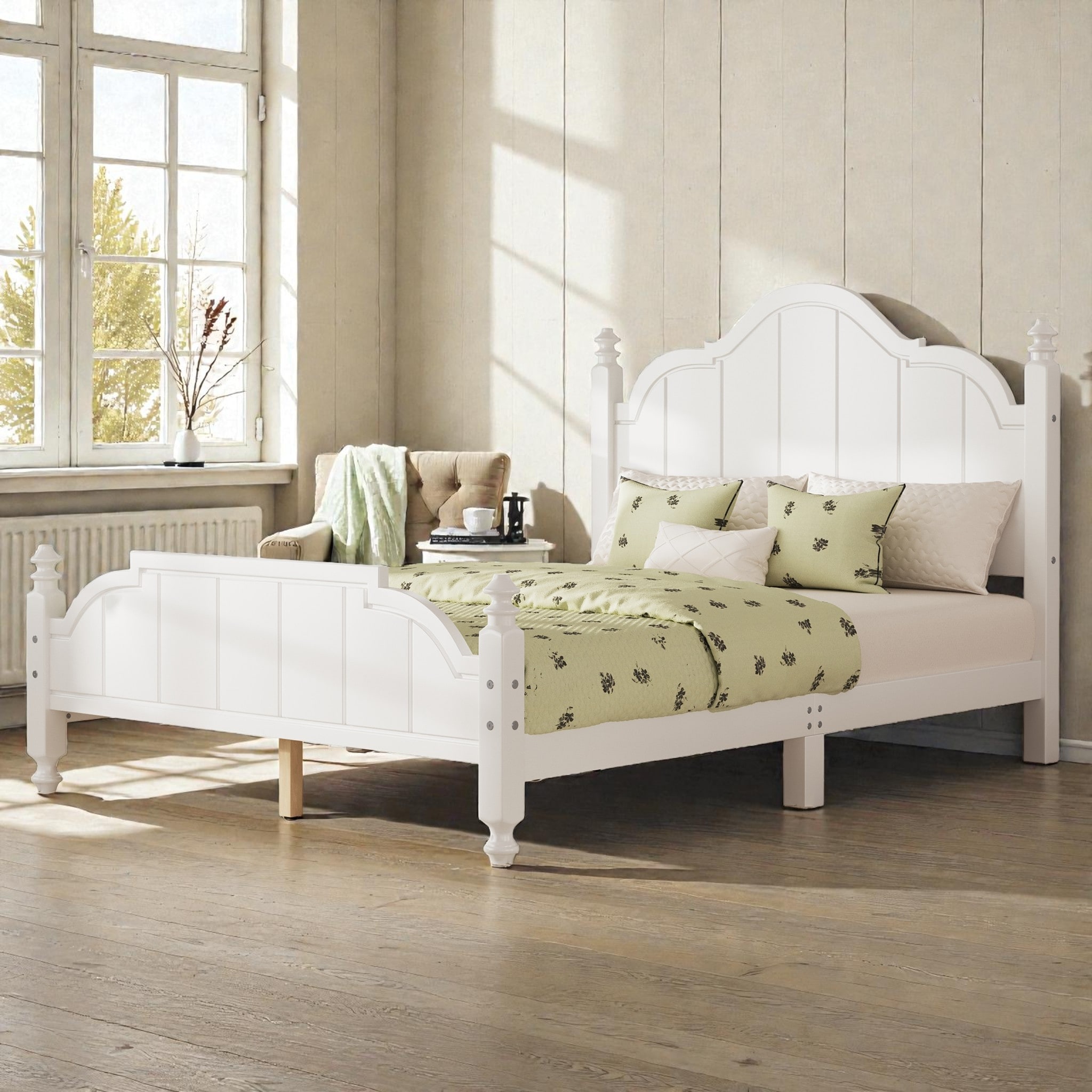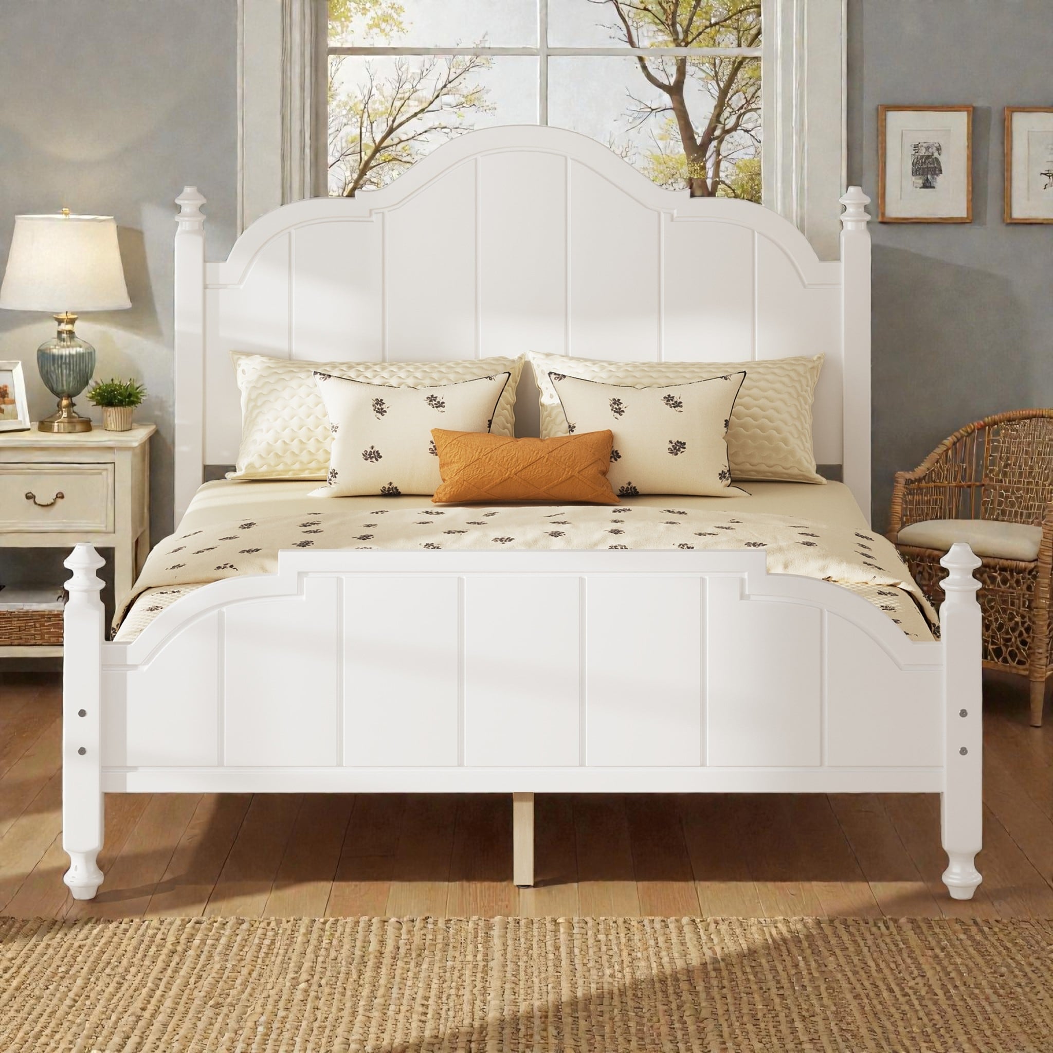 Full/Queen Wooden Platform Bed Frame with Wide Headboard, Slat Support, Vintage Style, No Box Spring Needed