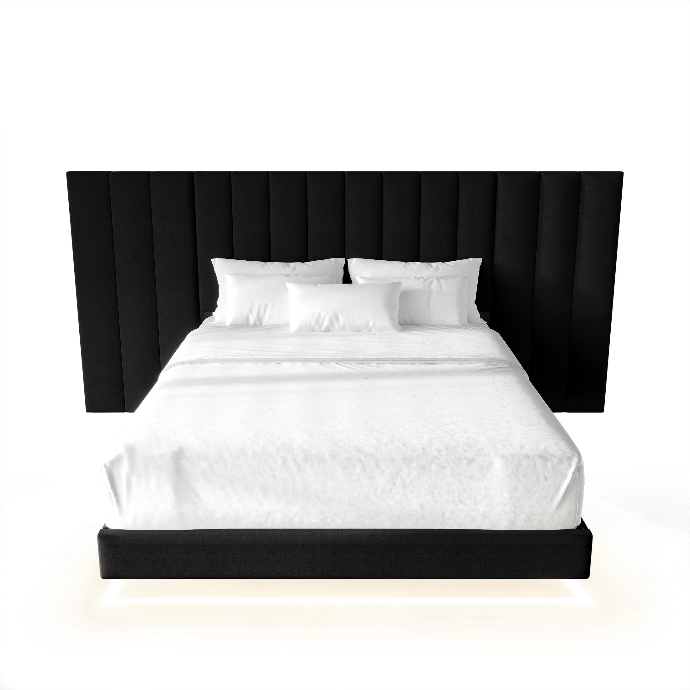 Modern Upholstered Platform Bed with Button-Tufted Headboard, Dark Grey, King Size