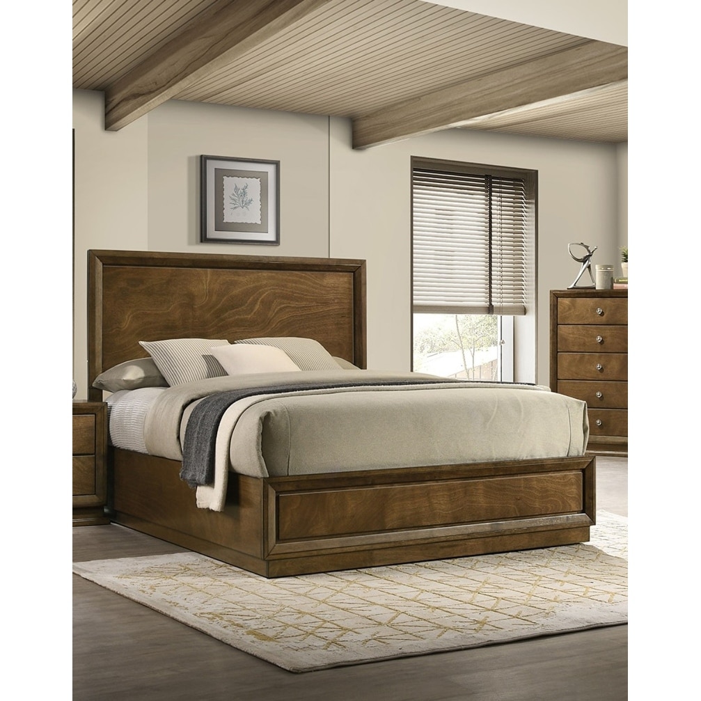 Queen Size Engineered Wood Panel Bed with High Headboard and Rubberwood Construction
