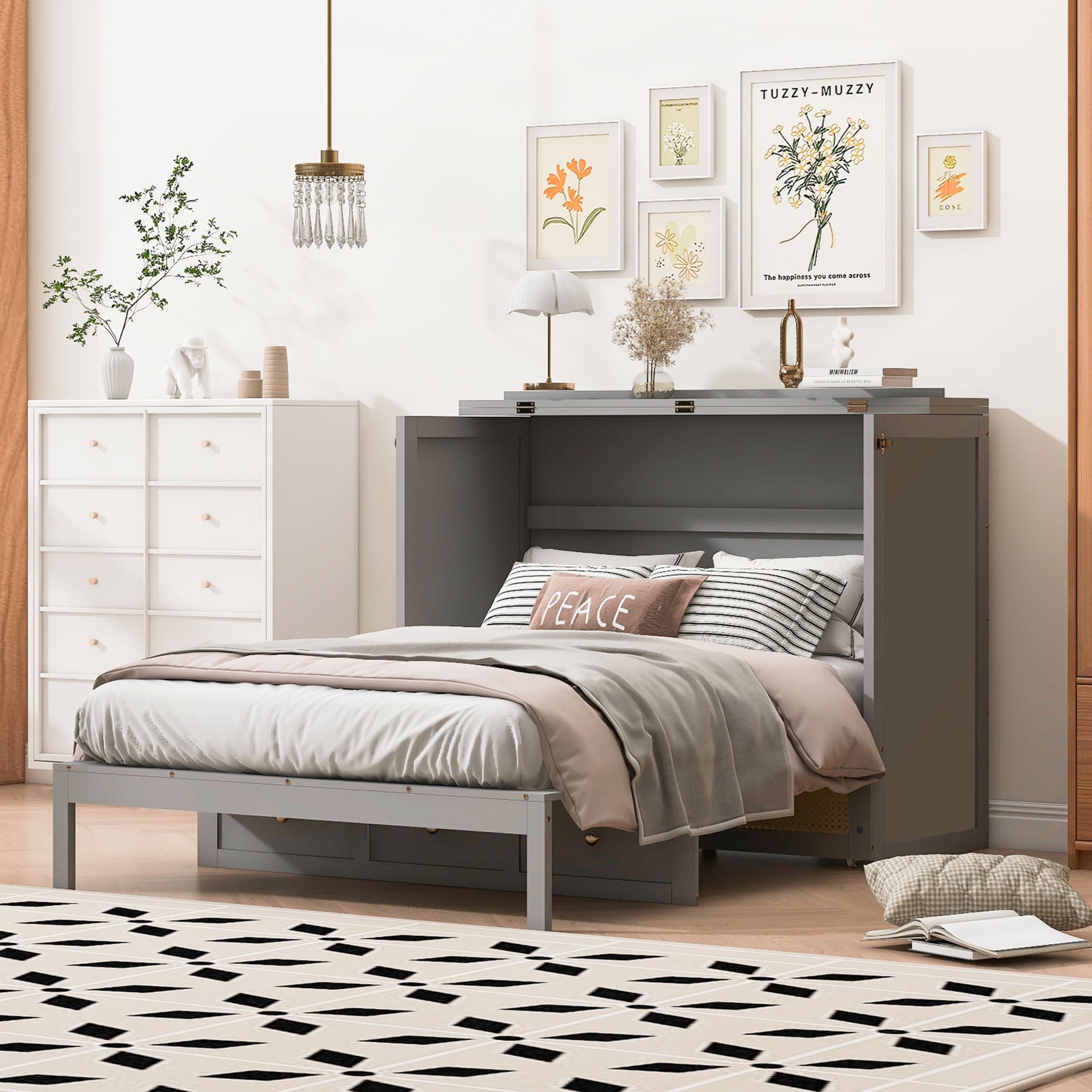 Full Size Murphy Bed Hideaway Cabinet Bed Frame with Storage Drawers, Bedroom Folding Wall Bed Platform Bed, Slat Support
