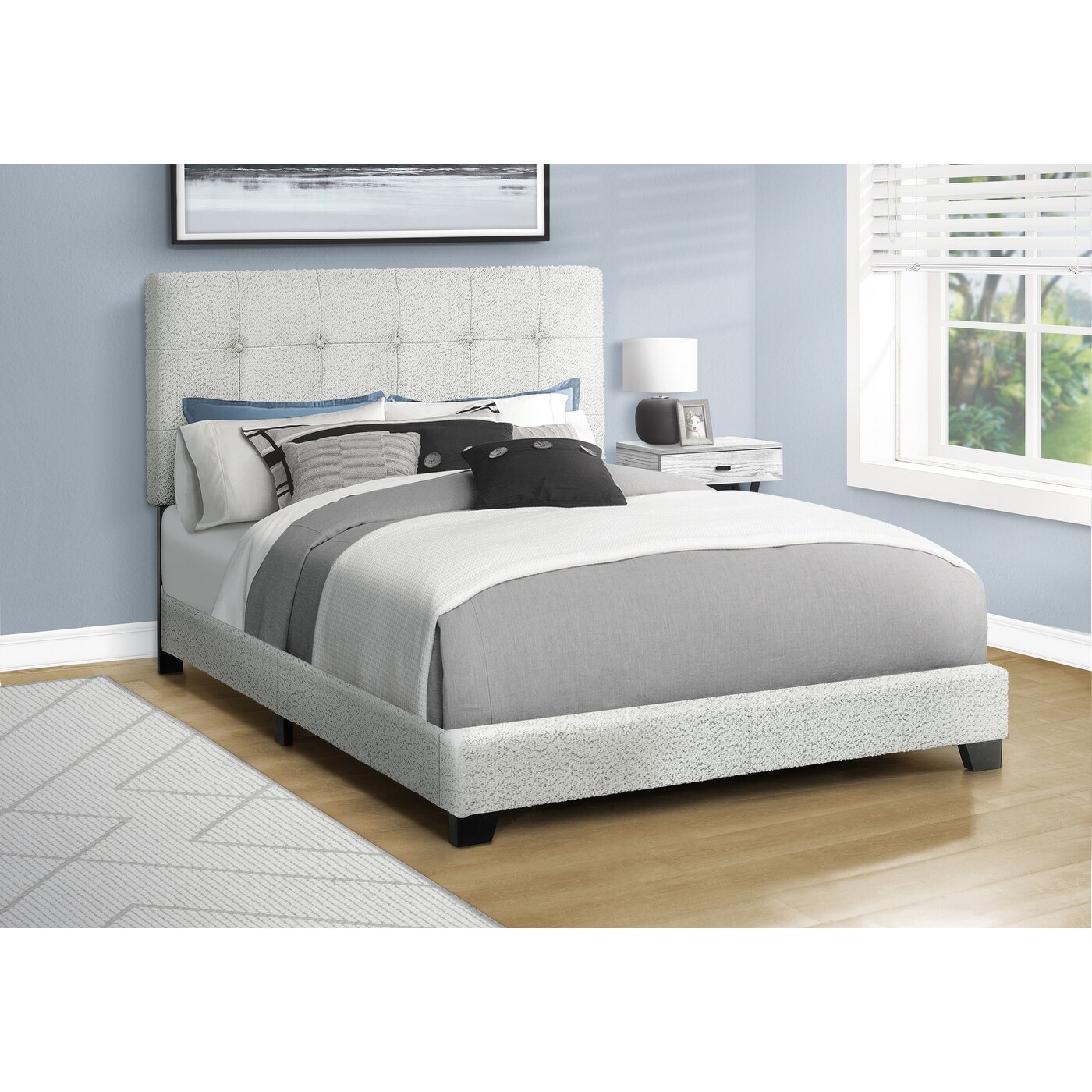 Full Size Upholstered Bed Frame in Boucle Fabric with Button-Tufted Headboard, Transitional Design