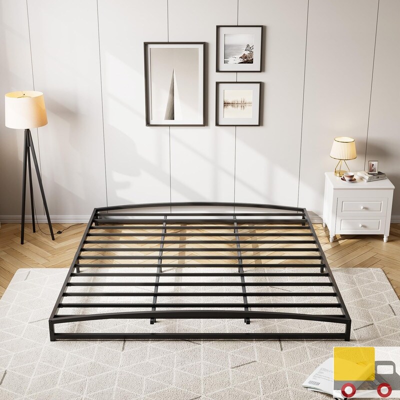 Low Profile Bed Upholstered Platform Bed Floating Bed with Sensor Light and Ergonomic Design Backrests Slat Support