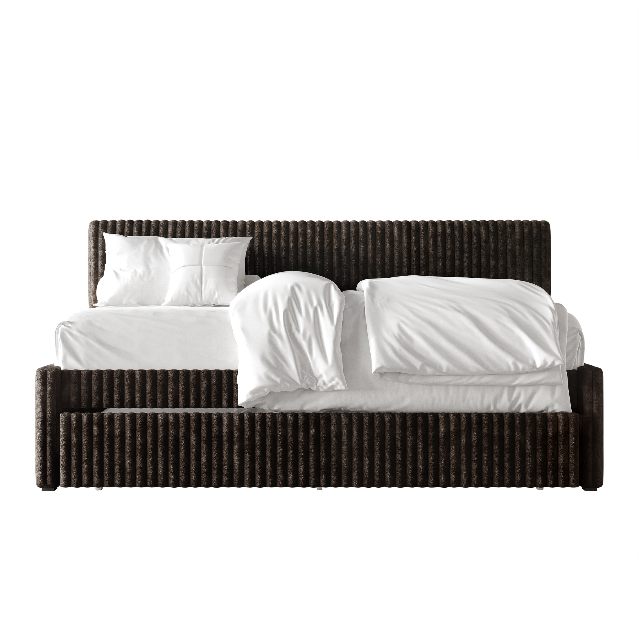 Elegant Velvet Upholstered Twin Daybed Sofa with Trundle and Wooden Slats