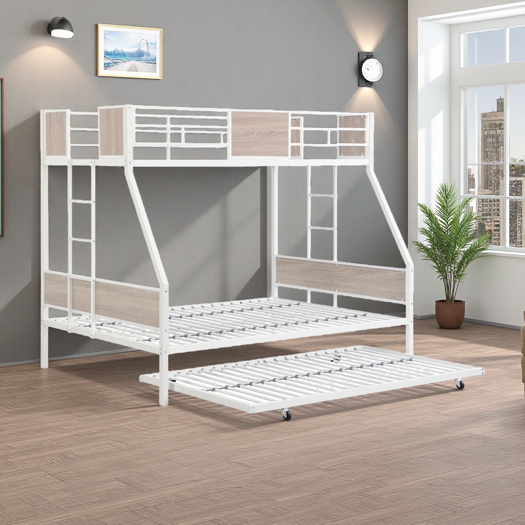Twin over Full Metal Bunk Bed with Trundle
